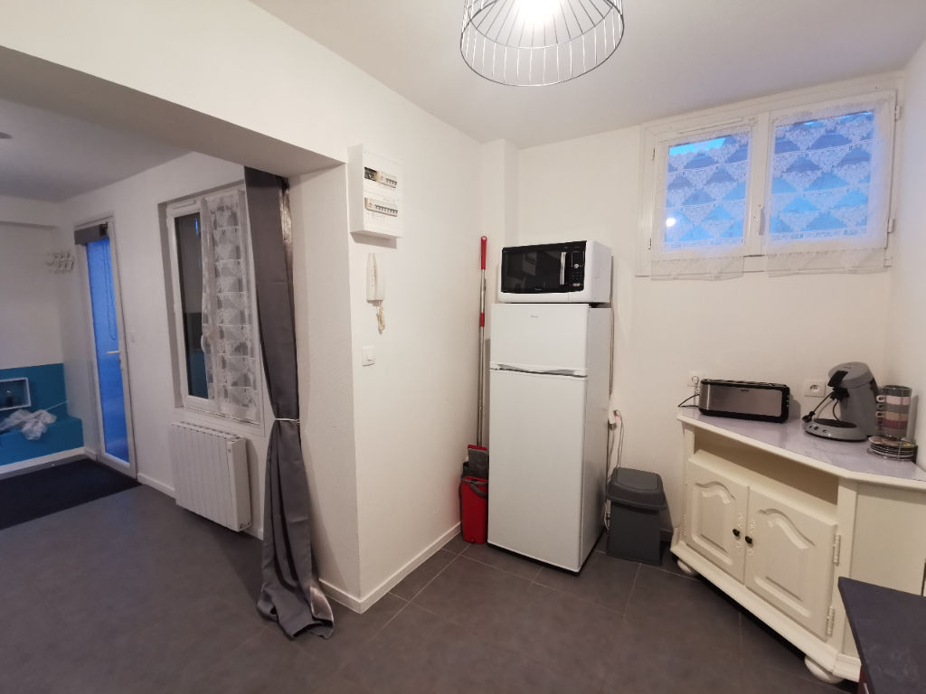 Proche du centre-ville, dans un petit immeuble calme situé au rez-de-chaussée T2 meublé de 35m² comprenant pièce de vie avec cuisine ouverte, une salle d'eau avec toilette, une chambre
