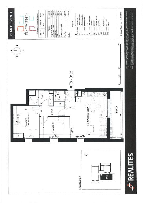 Dans Résidence de 2021 dans centre ville, proche du tram et des écoles, F3 dans Résidence comprenant : une entrée avec placard, un séjour sur cuisine, un dégagement avec placard, un WC, une salle d'eau, 2 chambres avec placard. Chauffage au gaz.