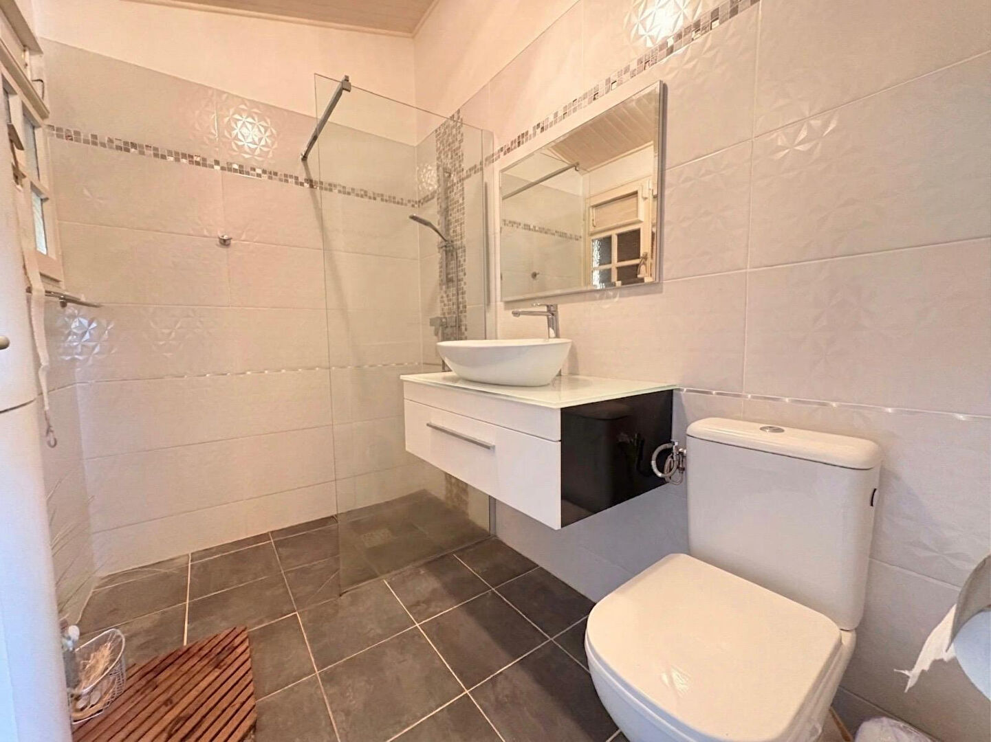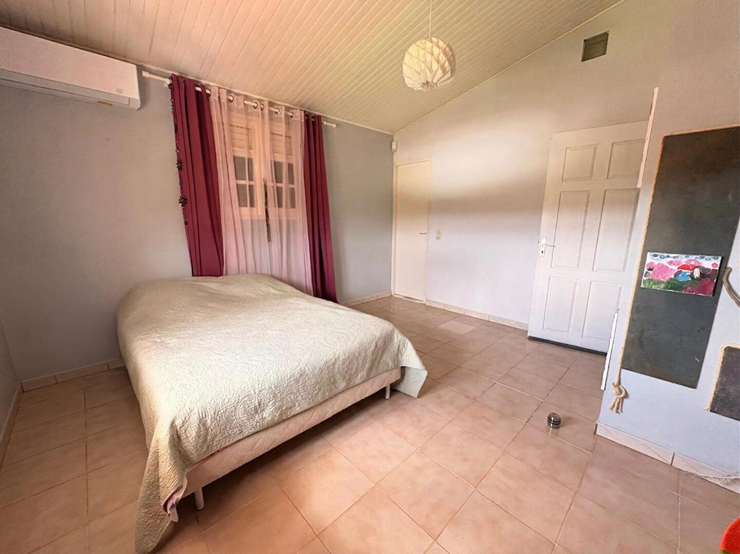 Le rez-de-jardin accueille une troisième chambre spacieuse, également climatisée, équipée d'un lit double et d'un lit simple, offrant ainsi une grande flexibilité de couchage.