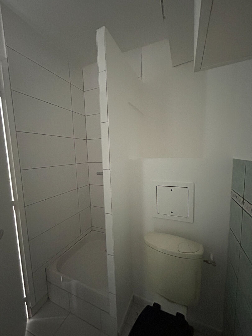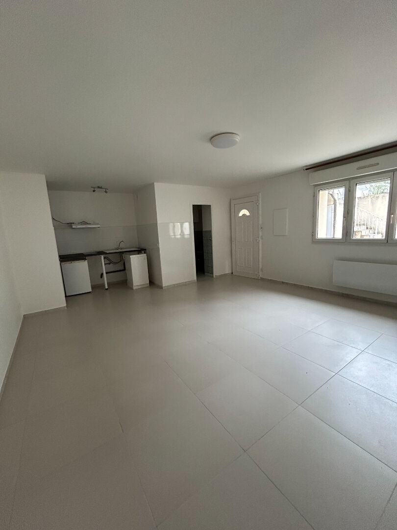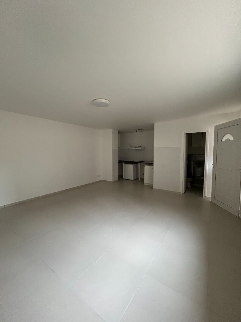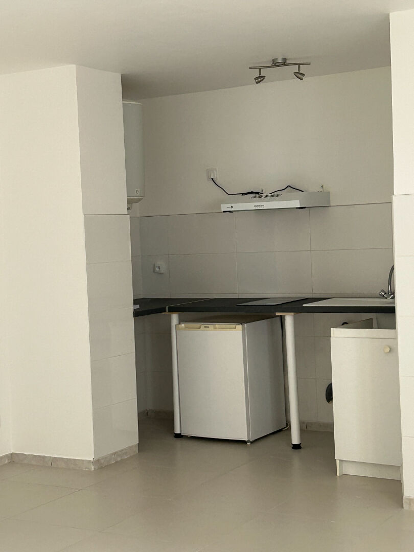 Dans une résidence Calme à 15 mn de la gare, beau studio avec cuisine ouverte meublée et partiellement équipée (plaques, hotte, réfrigérateur), une grande pièce principale et une salle d'eau avec wc.