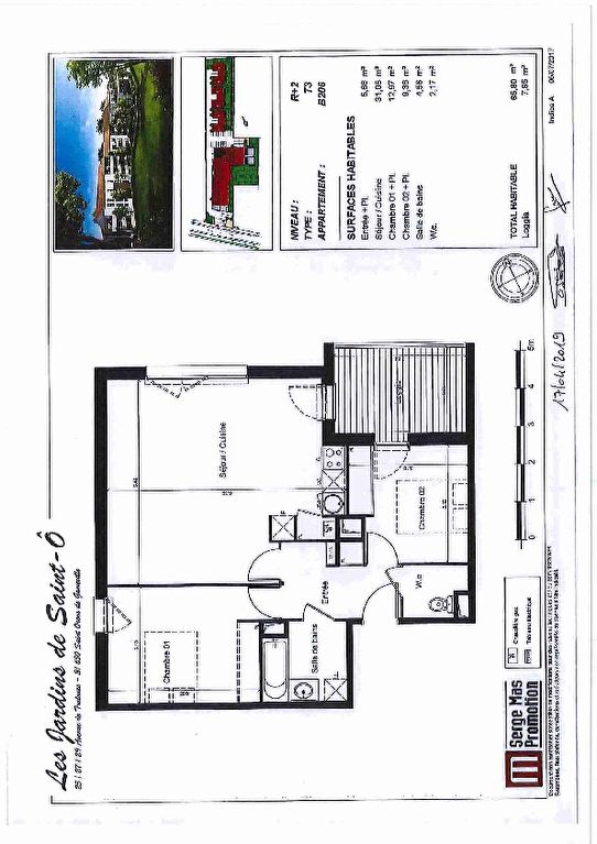 Venez découvrir cet agréable appartement T3 de 65.80 m² située dans une résidence récente et sécurisée de Saint-Orens de Gameville. Vous apprécierez la cuisine meublée et équipée (plaque de cuisson et hotte), la terrasse sans vis-à-vis et les deux places de parking en sous-sol. Le plus : local 2 roues privatif.