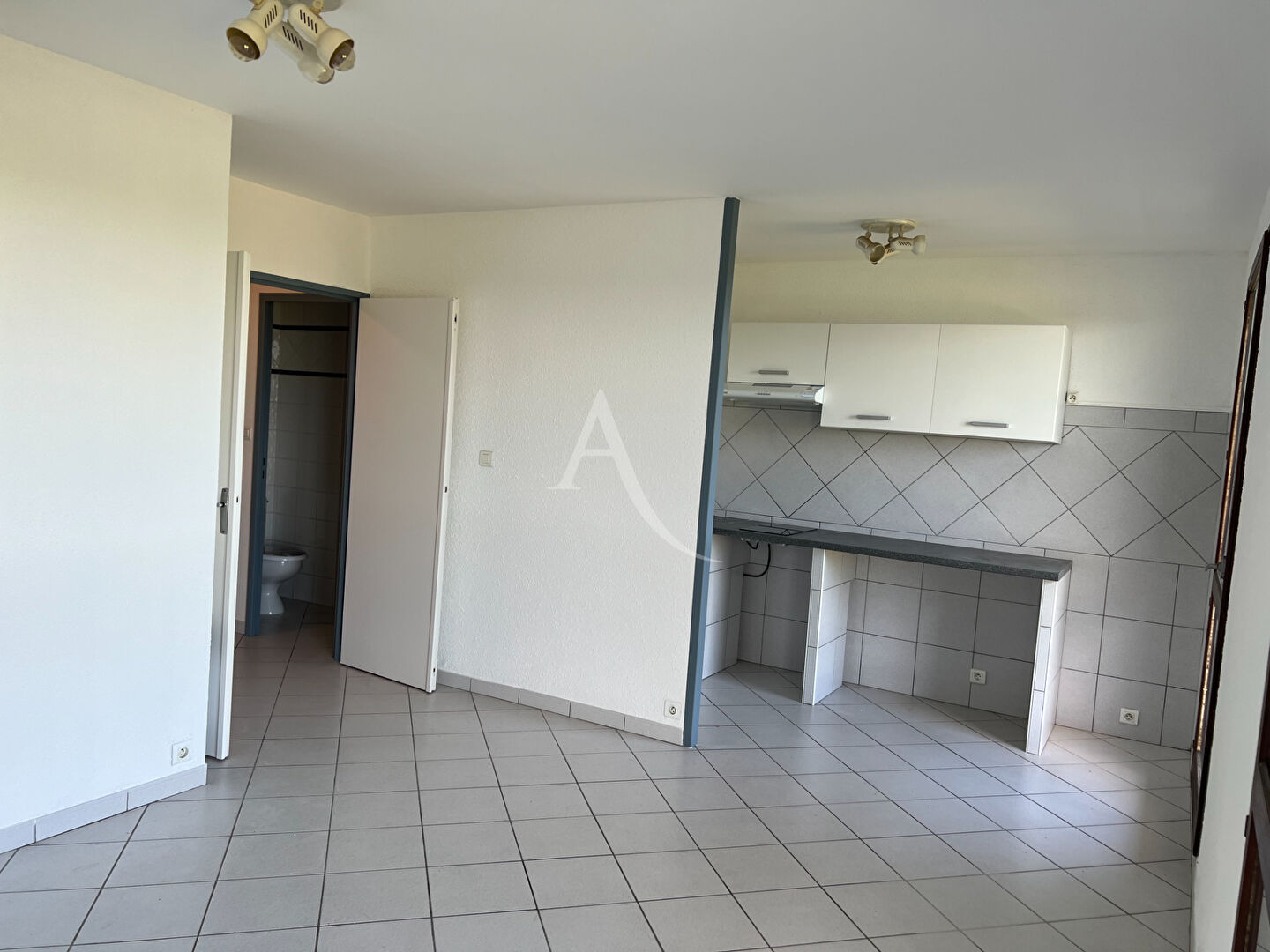 Appartement T1 bis dans une résidence en copropriété avec ascenseur. Il se compose d'une entrée desservant une pièce de vie d'environ 20m² avec cuisine ouverte aménagée et équipée (plaque, hotte), 1 bureau de 6.77m² et une salle de bains avec WC.