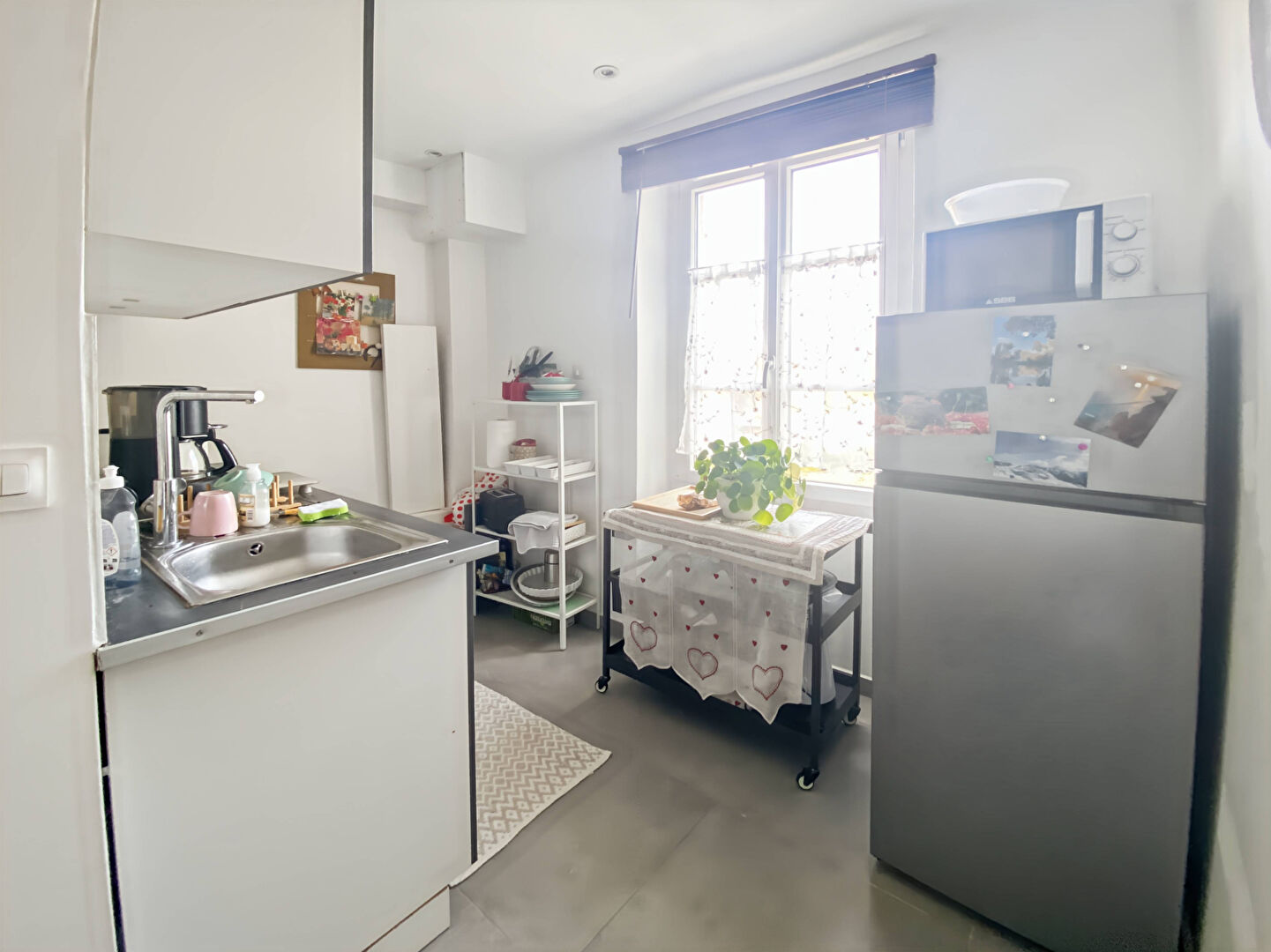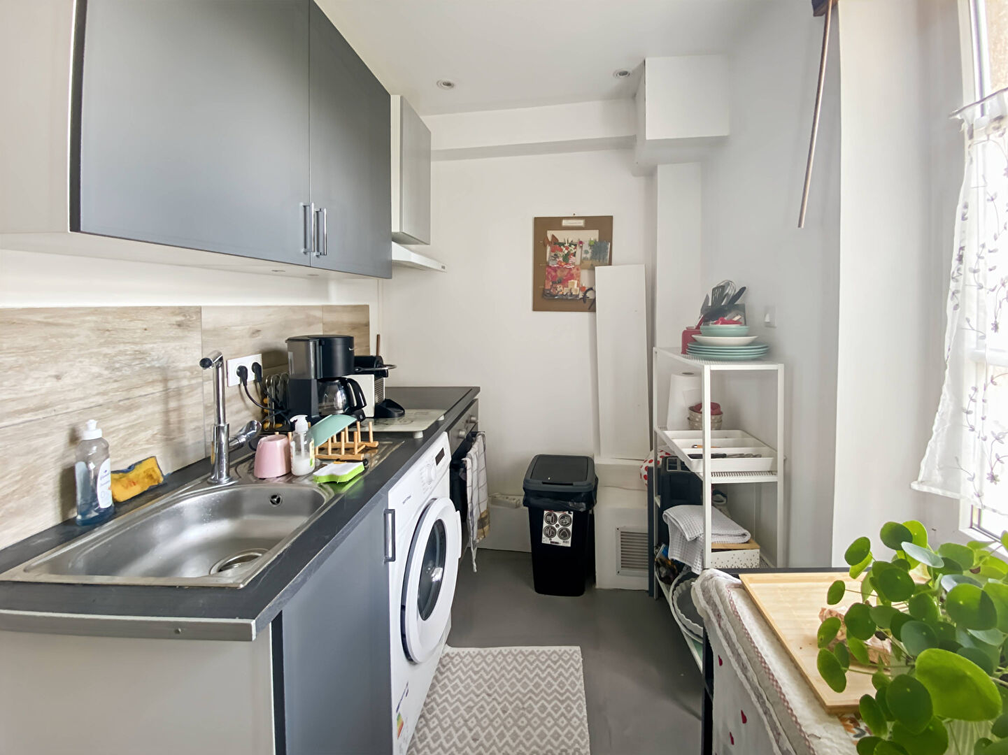 Entrée directement par la cuisine qui est aménagée et équipée en partie (plaques de cuisson et hotte), séjour à la suite et une chambre.