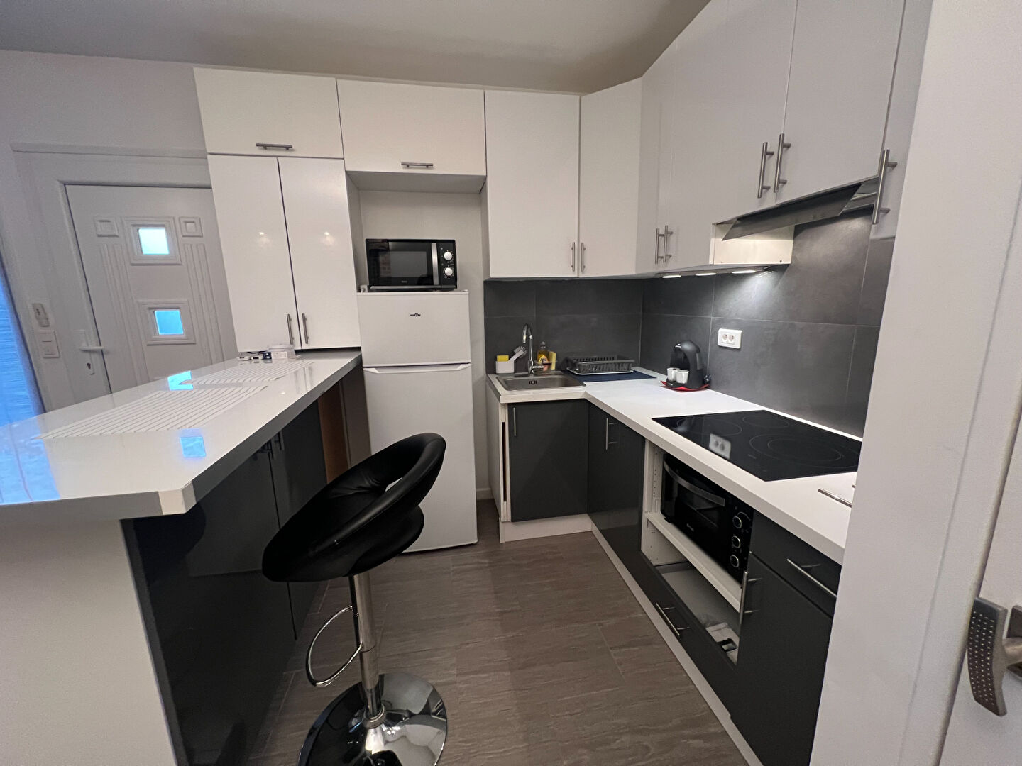 En parfait état il comprend, une grande pièce de vie avec cuisine équipée (plaque four et hotte), une salle d'eau avec wc,