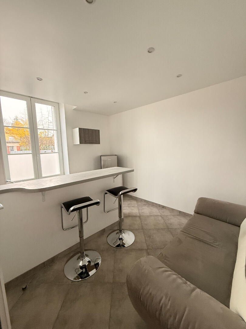 Proche lycée Nerval à Soissons, appartement de type F2, meublé, offrant entrée sur pièce principale avec coin cuisine, une chambre avec accès salle d'eau, wc indépendant. Ref : 411.