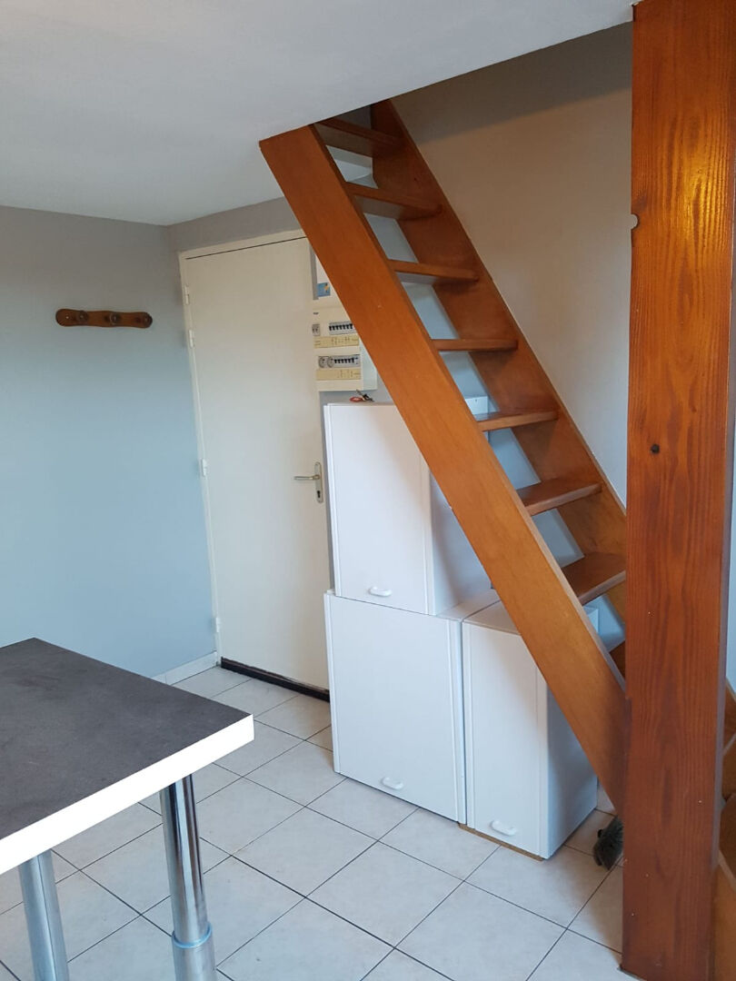 Proche de l'hôpital, au calme, appartement en duplex, au 2ème étage, meublé, comprenant entrée sur pièce principale, salle d'eau avec wc. En duplex, une chambre. Libre le 10 janvier 2026. Ref : 413
