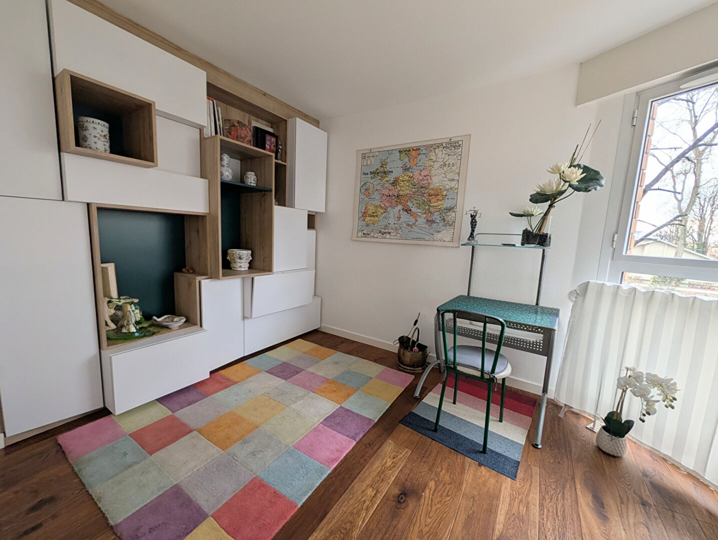 L'appartement séduit par la qualité de son parquet, la noblesse des matériaux et ses finitions soignées, offrant une atmosphère chaleureuse et élégante.