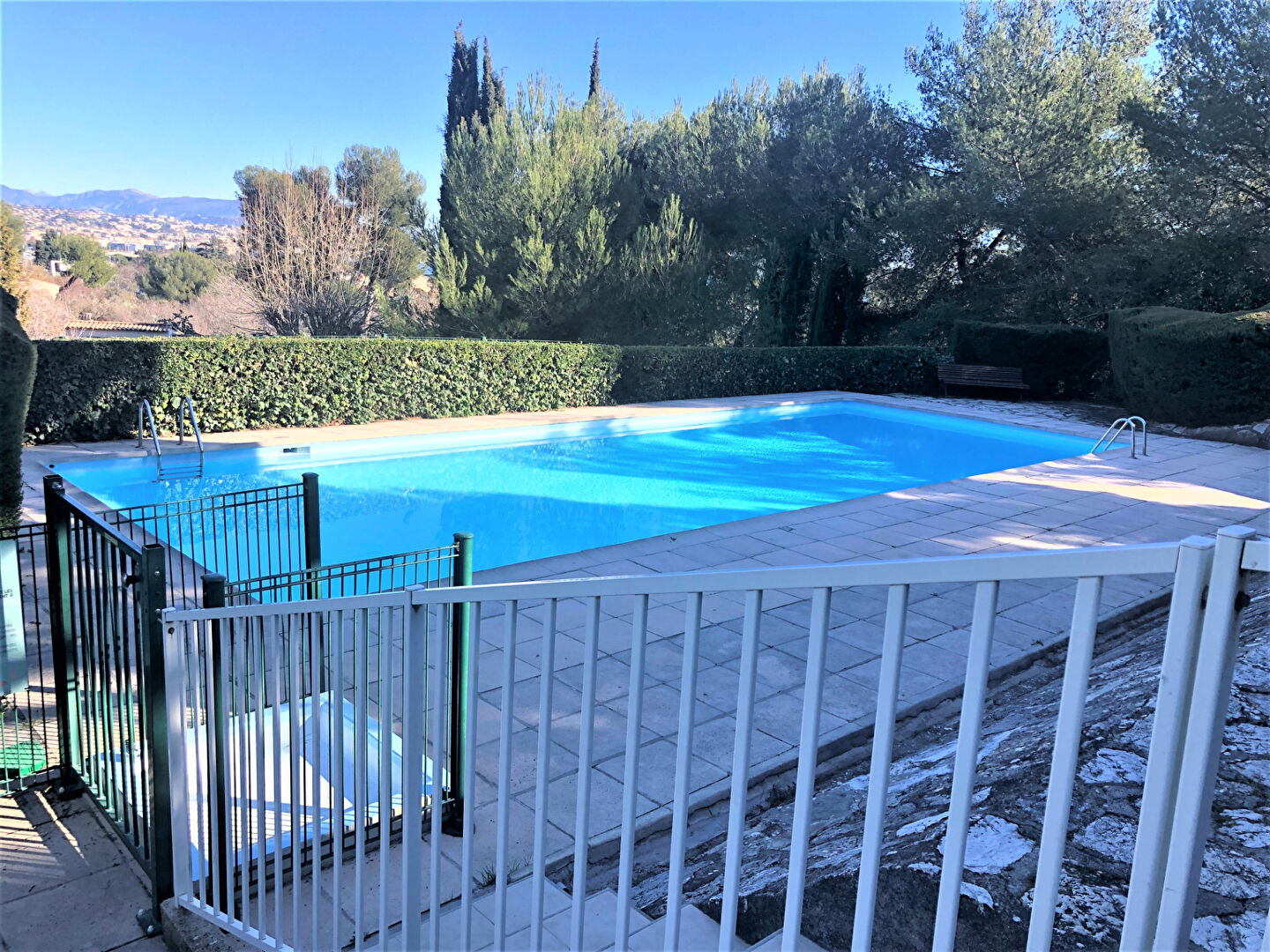 Dans une résidence sécurisée au calme avec piscine et terrain de tennis.