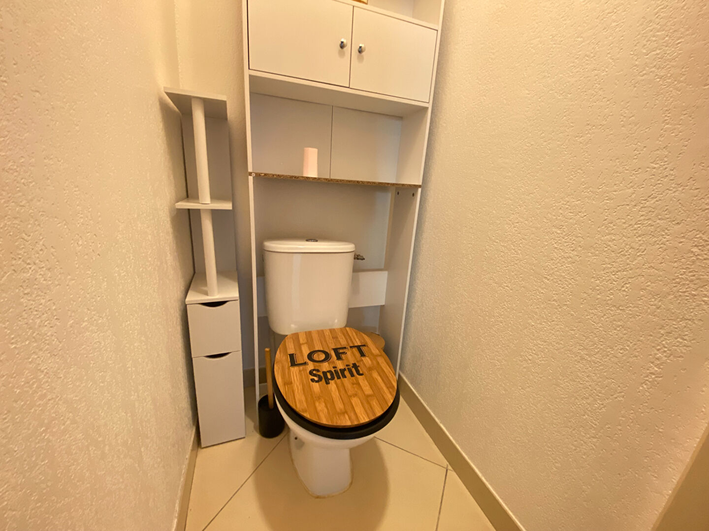 La pièce de vie est équipée d'une climatisation réversible et donne accès à un balcon orienté Est.