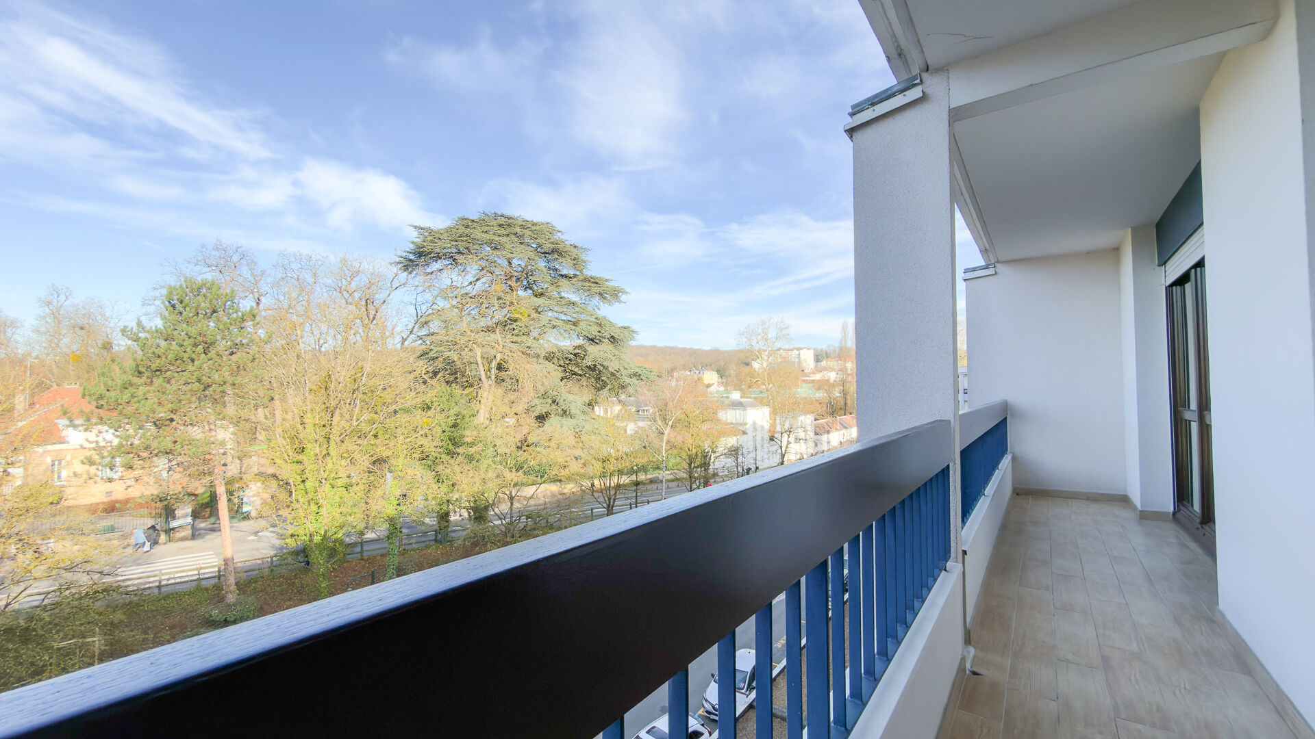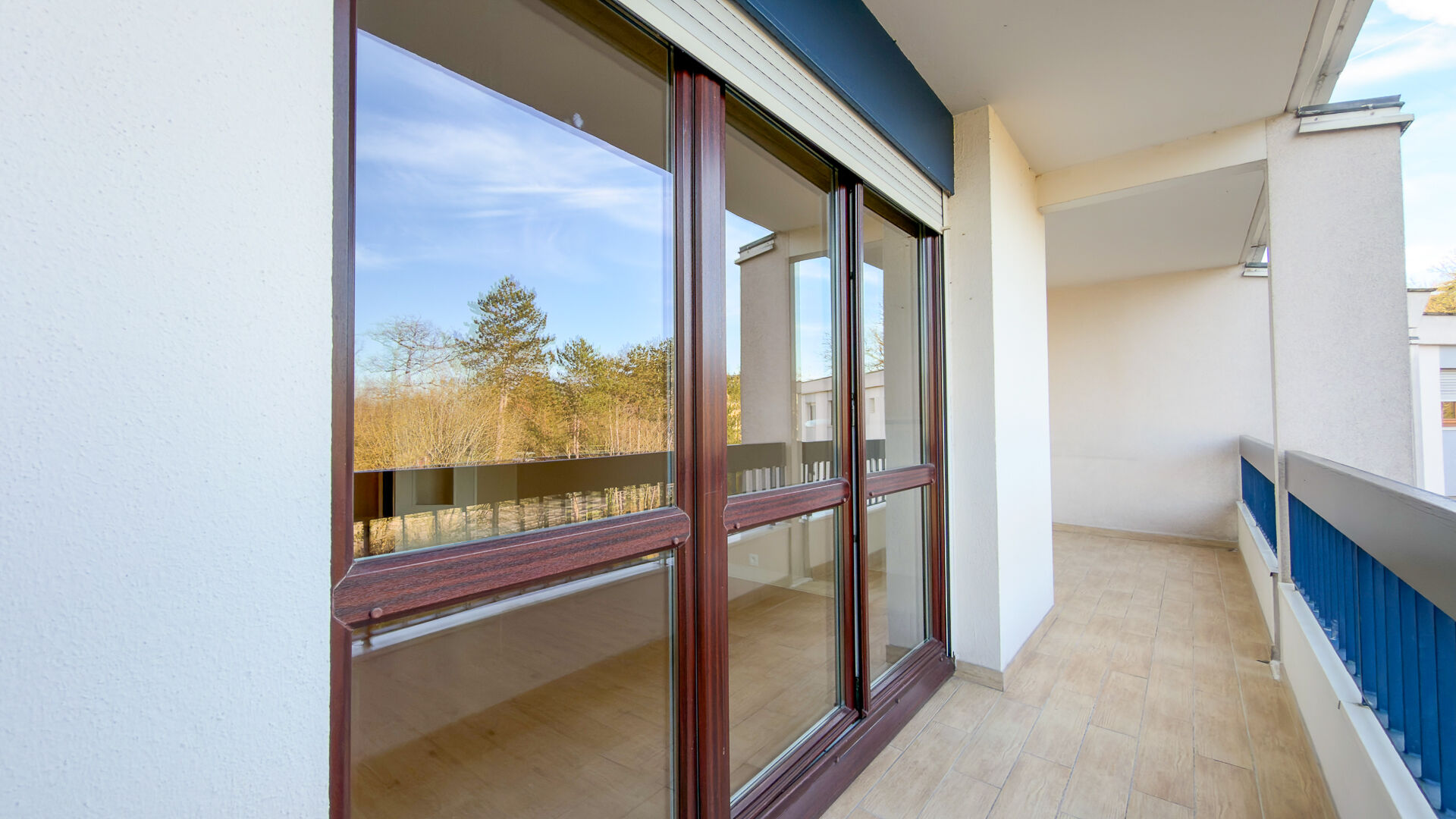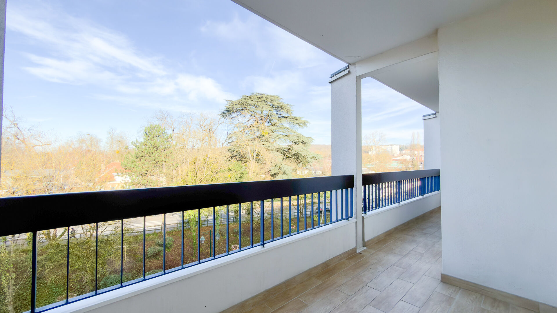 Les Jardins de Concy : Bel appartement F3, comprenant : Séjour, cuisine aménagée et équipée avec buanderie, débarras, deux chambres et un superbe balcon.