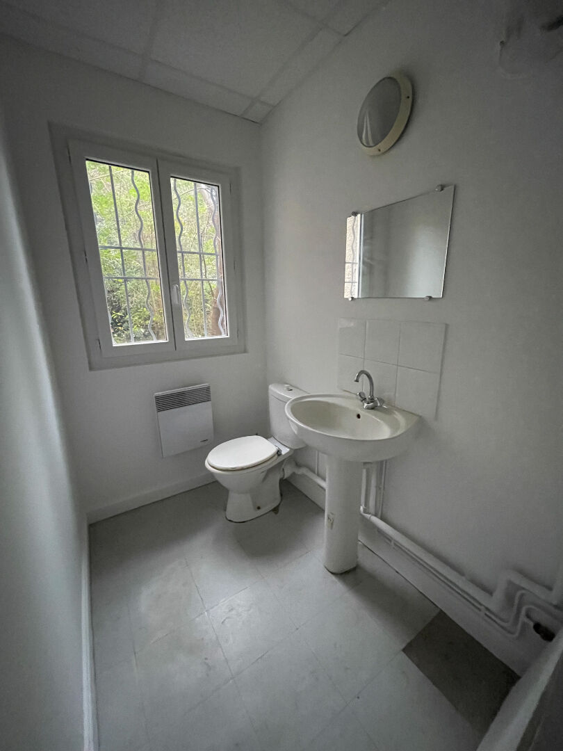 Nimes, secteur Préfecture, rue cité foulc. Local professionnel climatisé, en rez-de-chaussée d'un immeuble calme. 2 pièces, une de 18,17m2 et une de 21,25m2, des sanitaires. Immeuble avec fibre optique. Loyer 550€ cc (eau froide, communs, OM). DPE vierge. Honoraires 540€.