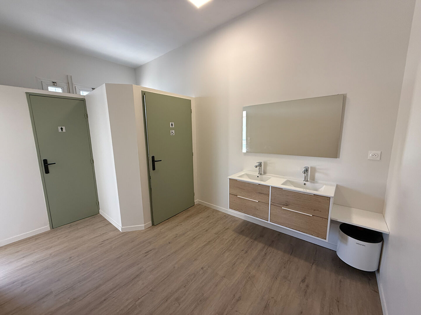 Une entrée en rez-de-chaussée avec un espace sanitaires (accès handicapés prévu).