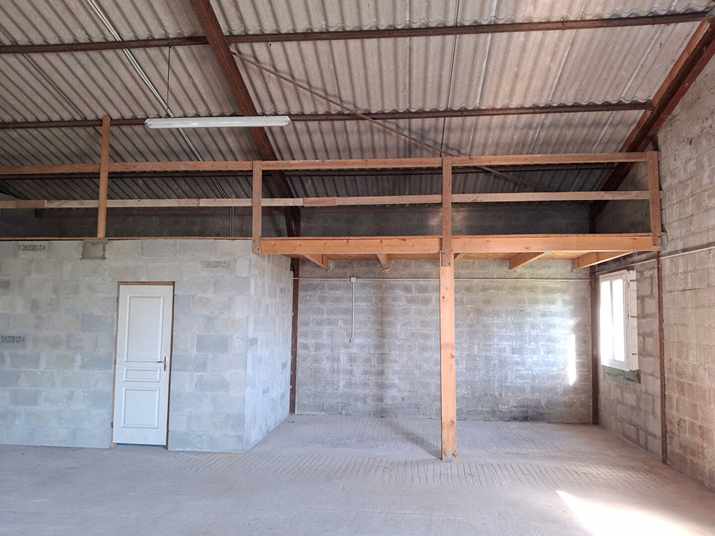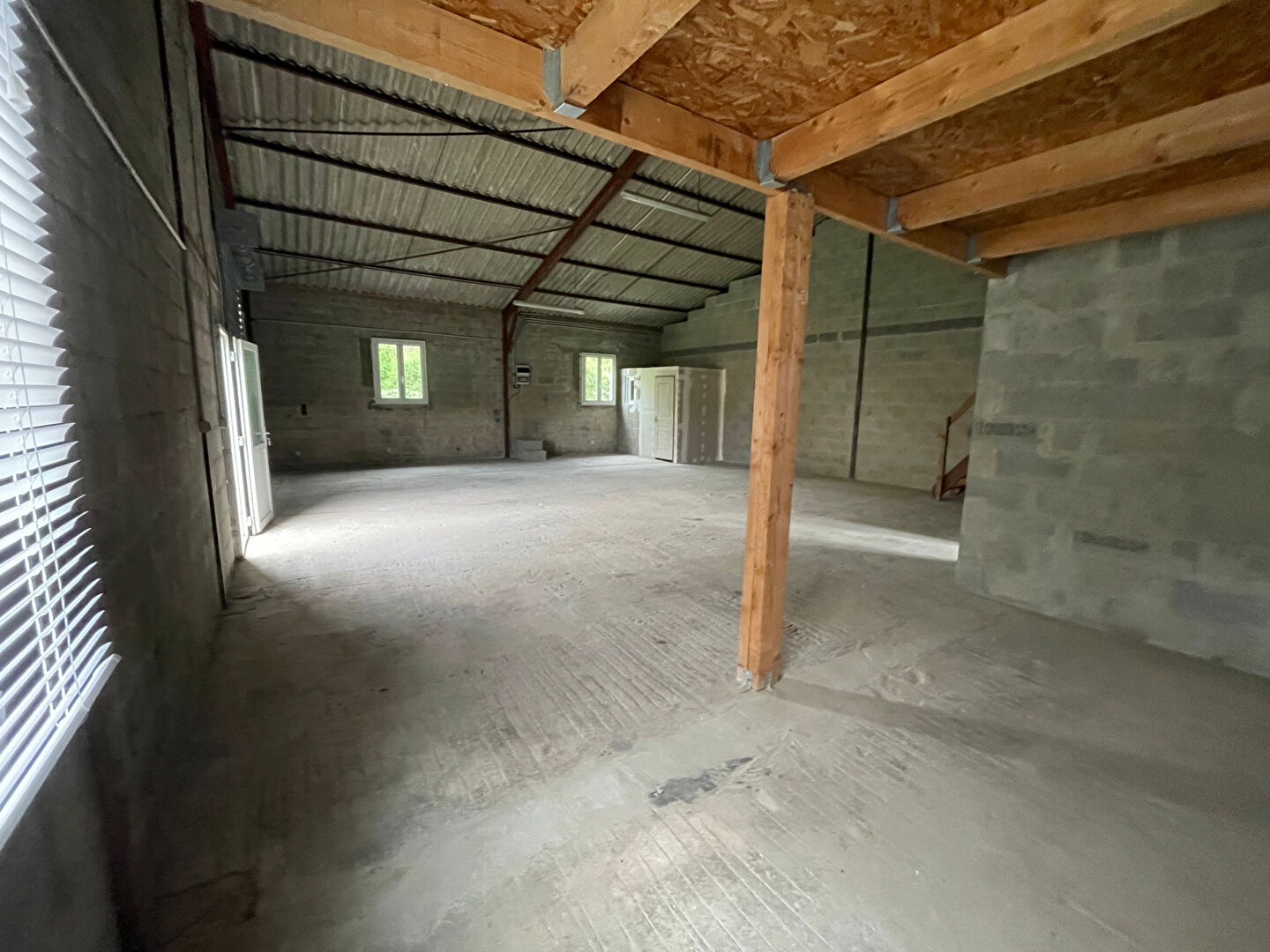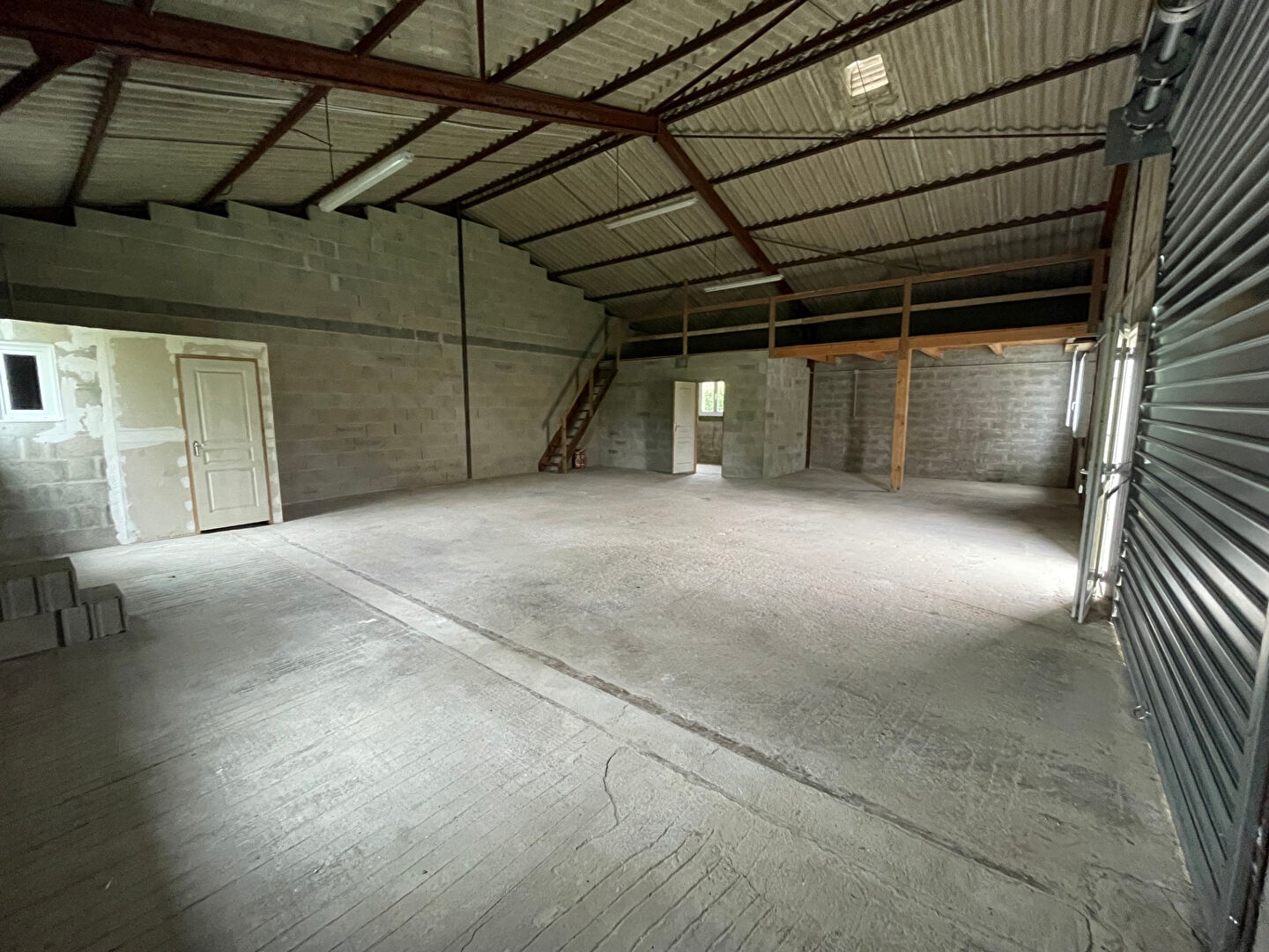 Le batiment est équipé de wc, eau, électricité, porte: hauteur 3,09m et largeur 2,77m.