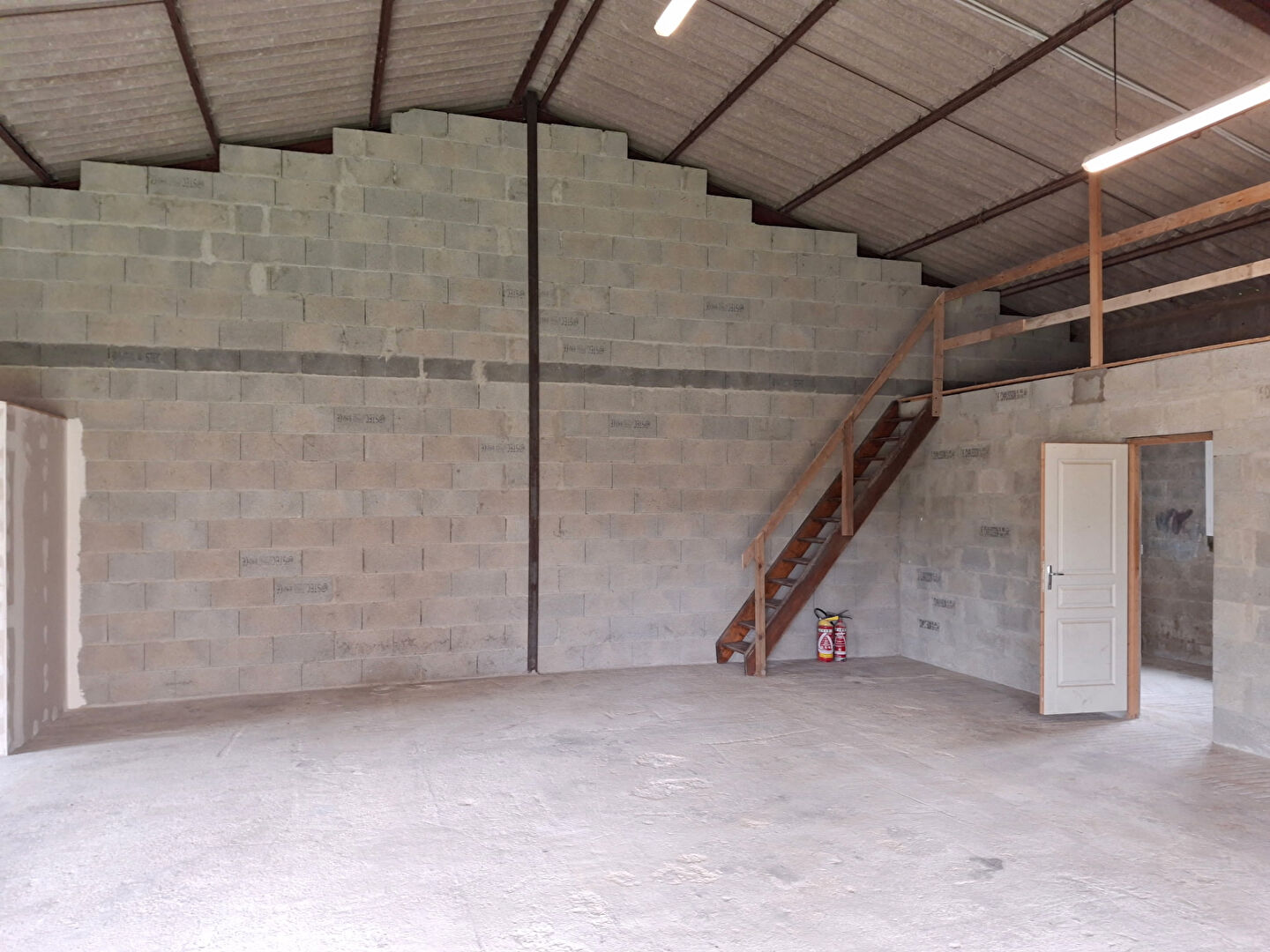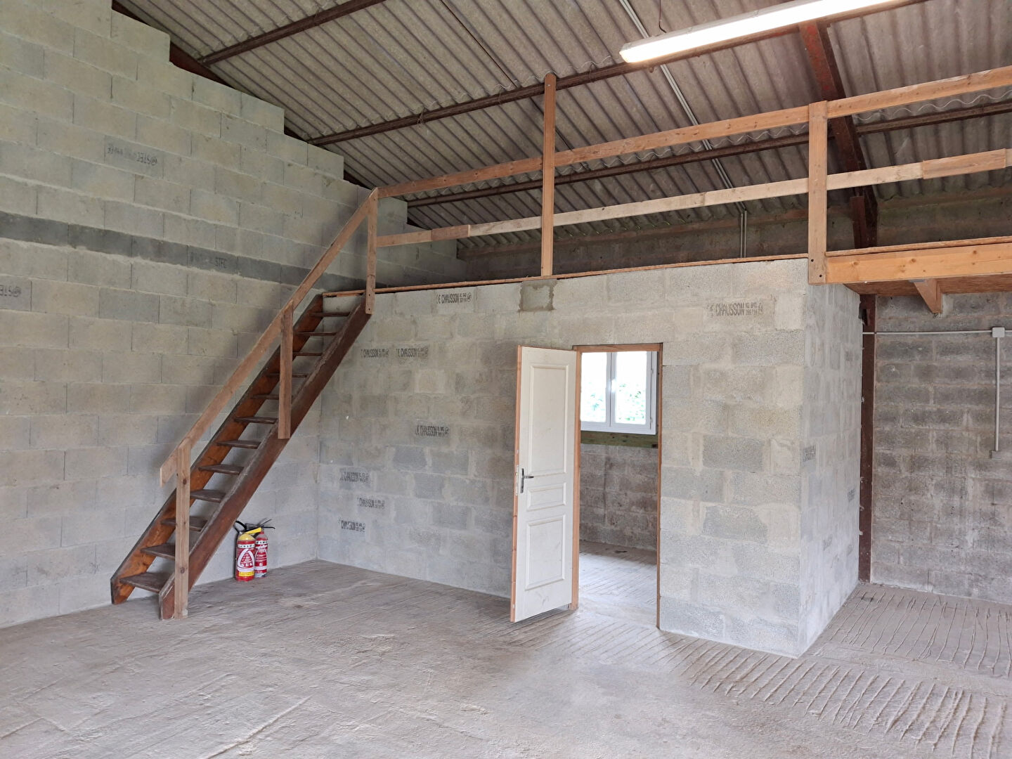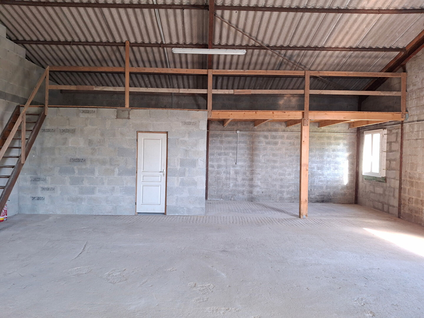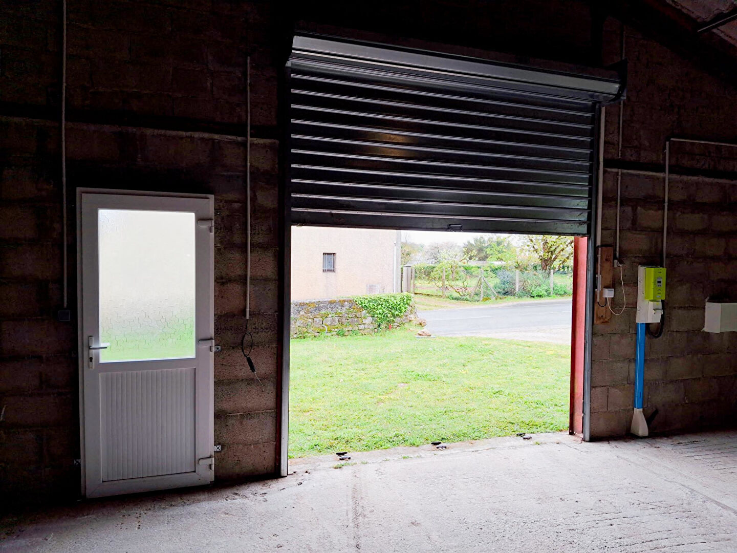 Le batiment est équipé de wc, eau, électricité, porte: hauteur 3,09m et largeur 2,77m.