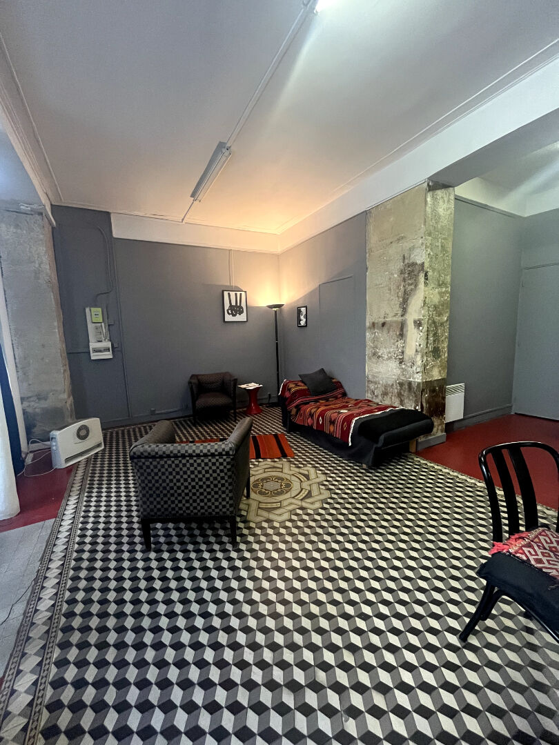 Le bien se compose d'un grand espace, d'une cuisine, d'une cave ainsi que d'une petite cour partagée à l'arrière.