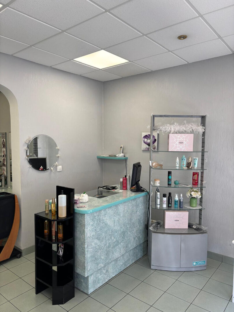 Local commercial à usage de salon de coiffure, proposé avec son équipement complet, situé en centre ville de Soissons. Un espace commercial, coin kitchenette, pièce buanderie. Cour. Ref : 385.