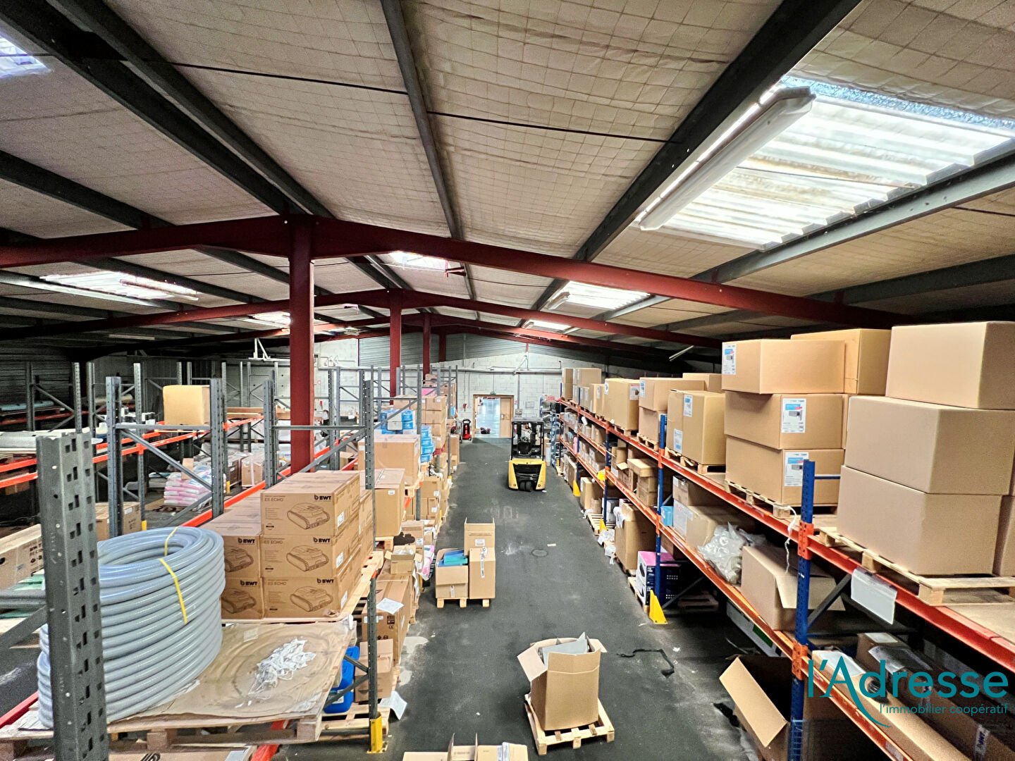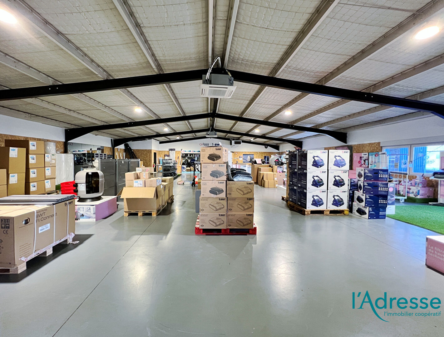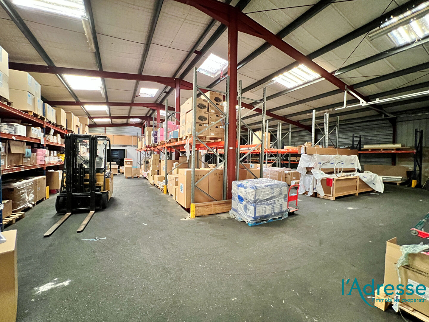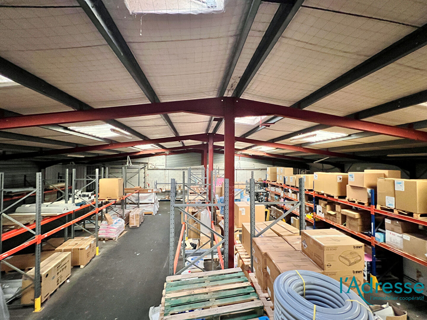 Une zone de stockage attenante d'environ 530 m² complète l'ensemble, avec mezzanine, WC, douche et porte sectionnelle pour un accès pratique.