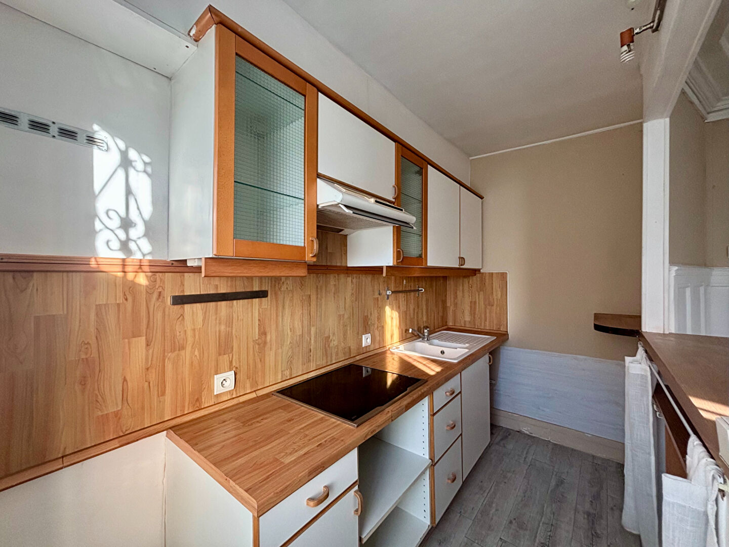 Maison de ville à 10 min à pied de la gare et à deux pas des quais. Cette maison dispose d'une belle entrée spacieuse desservant une pièce de vie avec séjour et cuisine équipée mais également une salle de bain avec douche et WC.