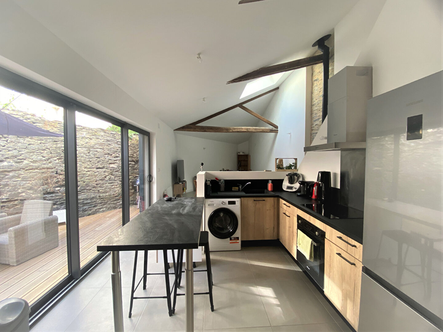 Disponible le 13 Février 2026 Maison neuve (non-meublé) au pied de la gare d'Angers RUE BOUGERE avec terrasse et stationnement privatif. Cette maison est composée au rez-de-chaussée d'une entrée, une grande pièce de vie avec cuisine ouverte aménagée et équipée et poêle à granule, une chambre avec dressing, une salle d'eau et un WC séparé. A l'étage, une grande chambre avec dressing et une salle d'eau avec WC. Une terrasse privative et un stationnement privatif.