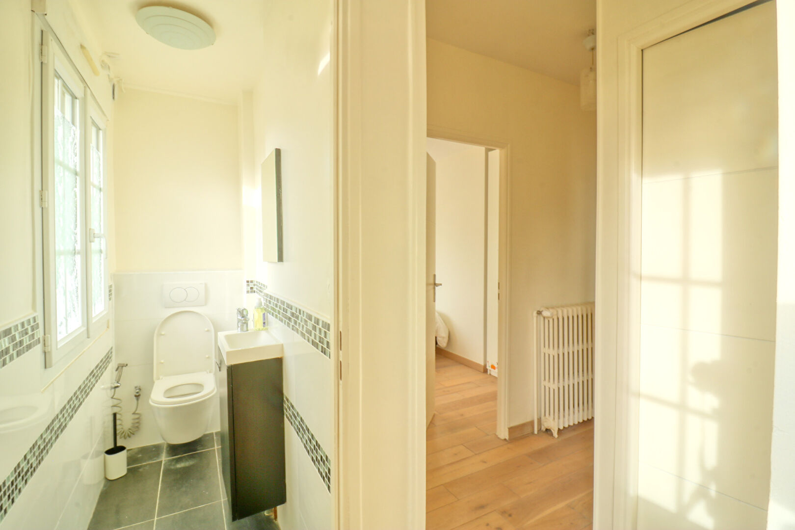 ANTONY - SECTEUR PARC DE SCEAUX / COULEE VERTE / ALISIERS, recherché pour son calme, son environnement verdoyant et sa carte scolaire : André CHENIER (maternelle), Edmond BLANGUERNON (élémentaire), François FURET (collège). A quelques pas du Parc de Sceaux et juste à l'entrée du Parc des Alisiers, Maison de 104m² habitables - 140m2 total : Entrée sur grand séjour rénové, cuisine indépendante, aménagée et équipée avec coin repas et accès jardin/terrasse. WC indépendant.