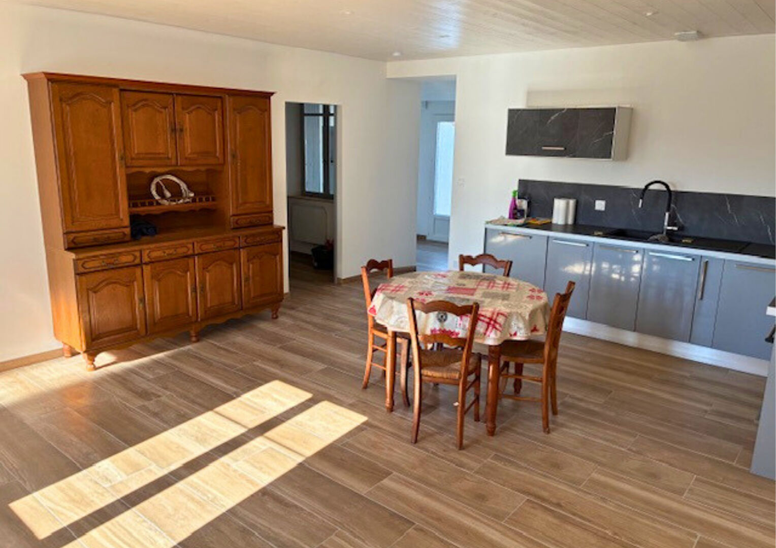 Maison entièrement rénovée, pièce de vie avec cuisine aménagée, deux chambres, salle d'eau, wc, cellier. Cour sur l'arrière.