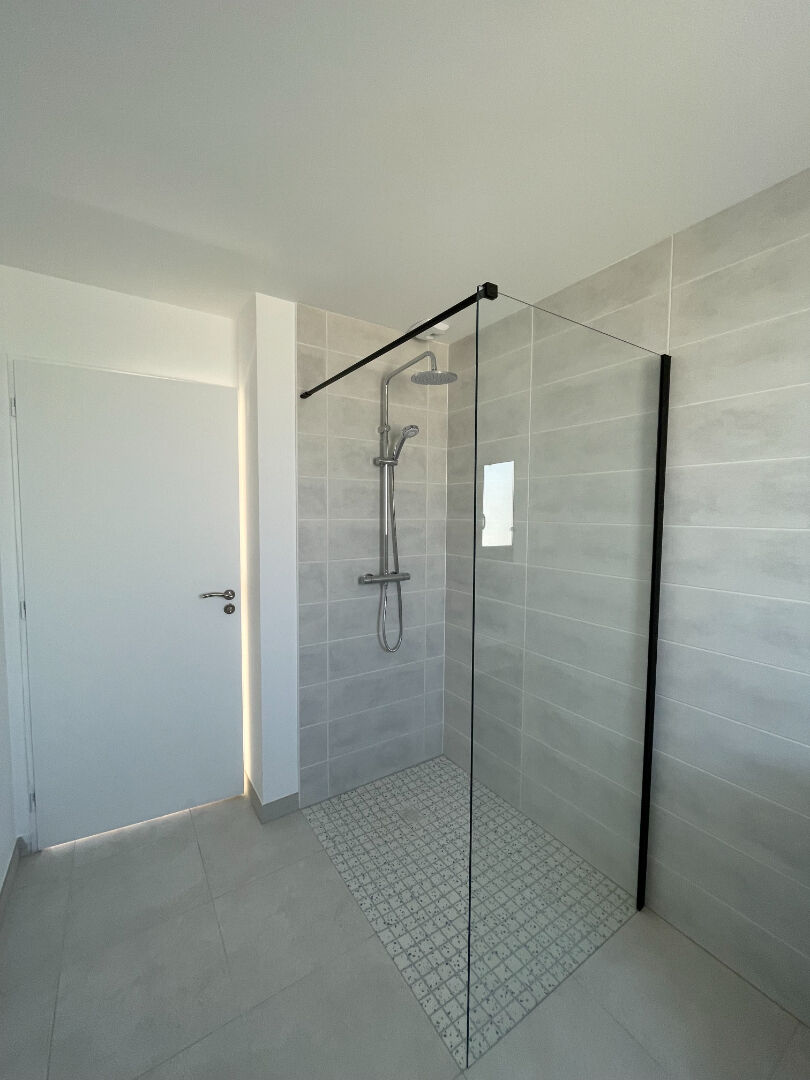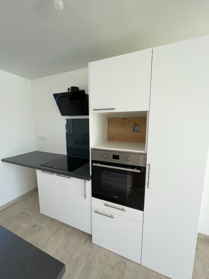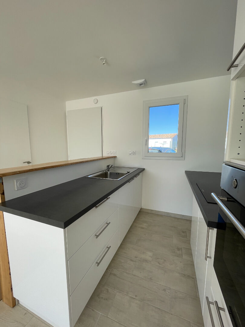 Comprend : un séjour-salon avec cuisine aménagée (hotte, four et plaque induction), un cellier, trois chambres avec rangements et une salle d'eau avec wc.