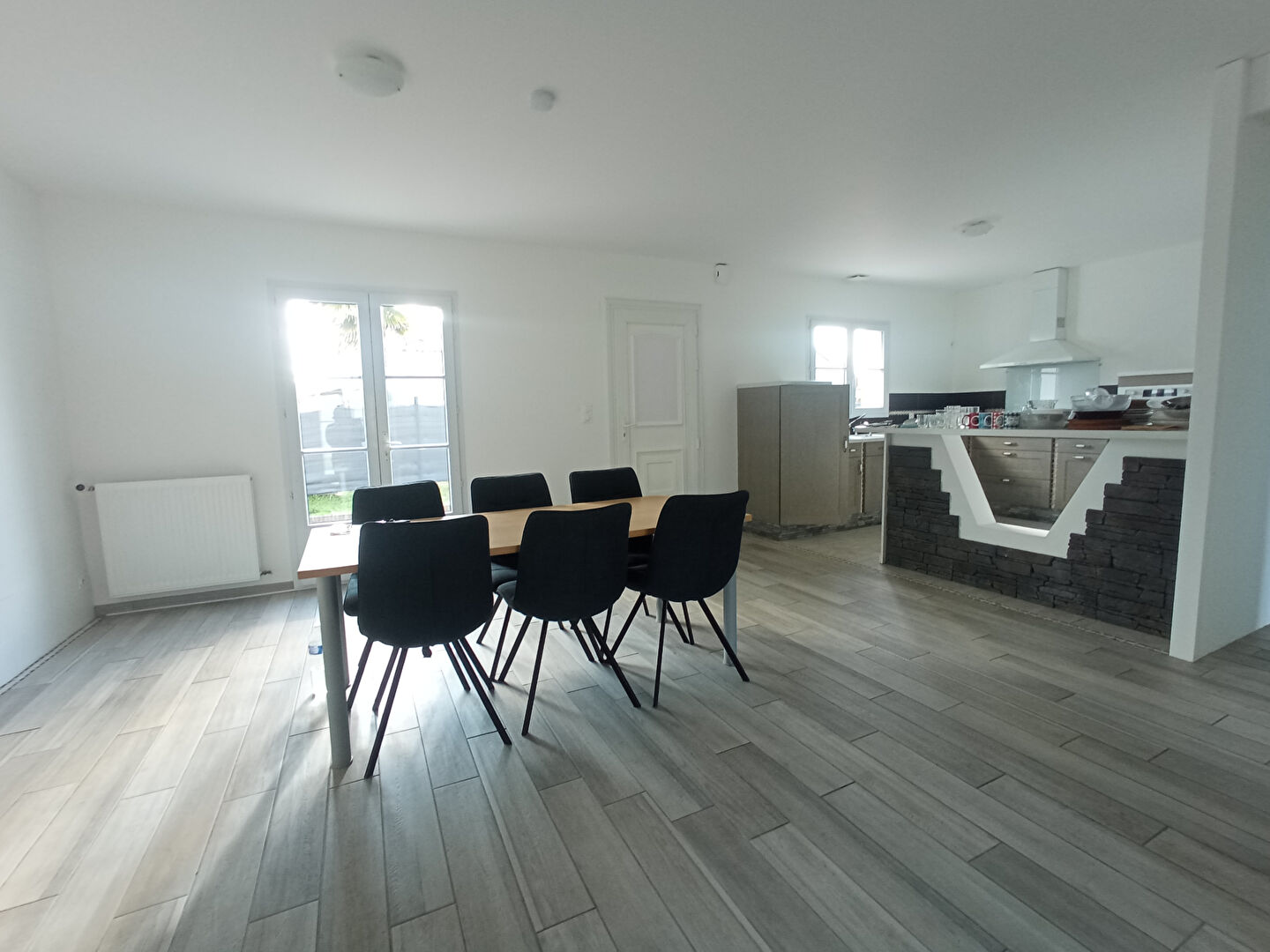 Maison de plain-pied meublée comprenant une belle pièce de vie de 45m² avec cuisine aménagée et équipée, un dégagement desservant quatre chambres dont une en enfilade, une salle d'eau et 2 W.C ainsi qu'un cellier.