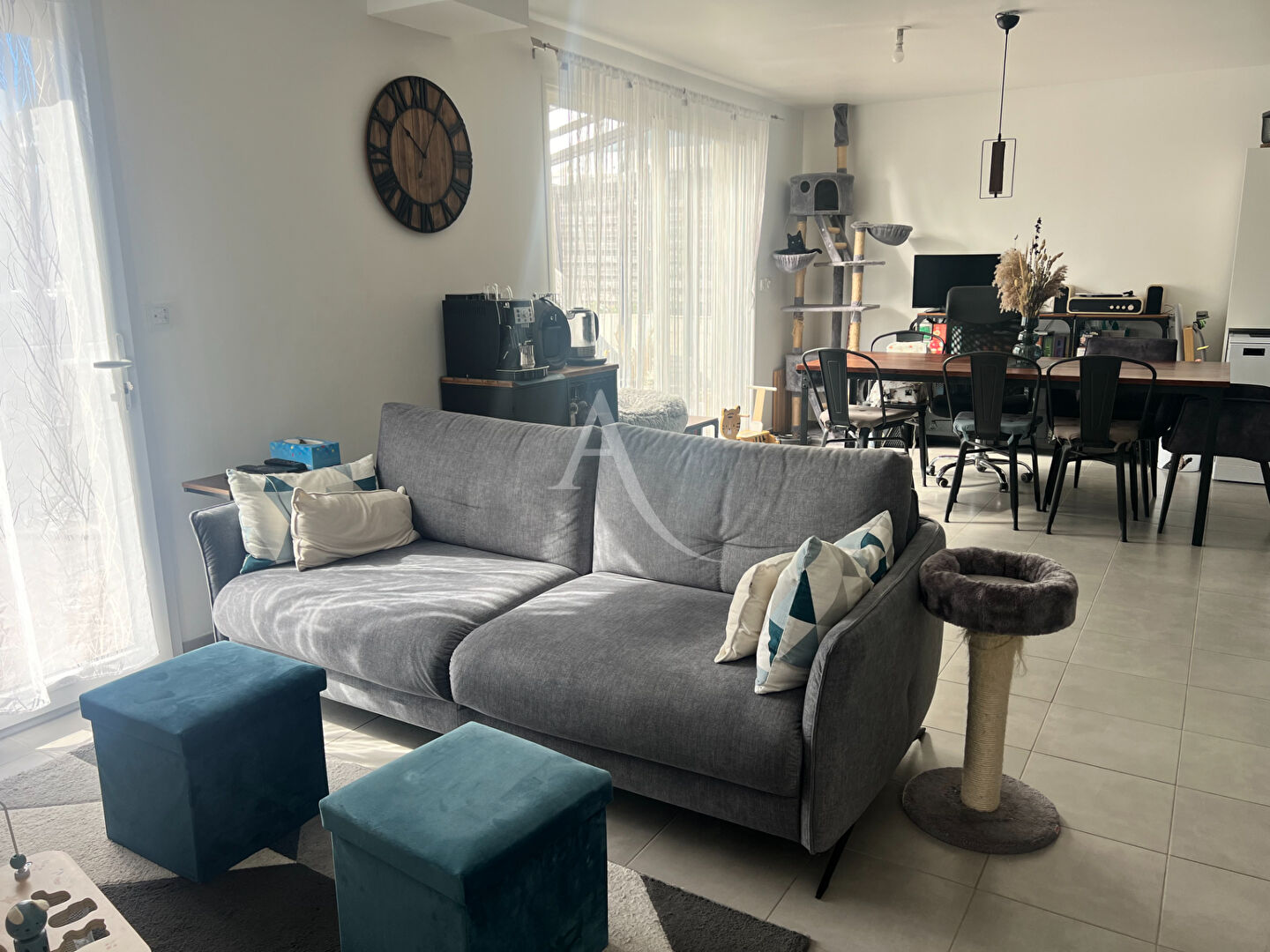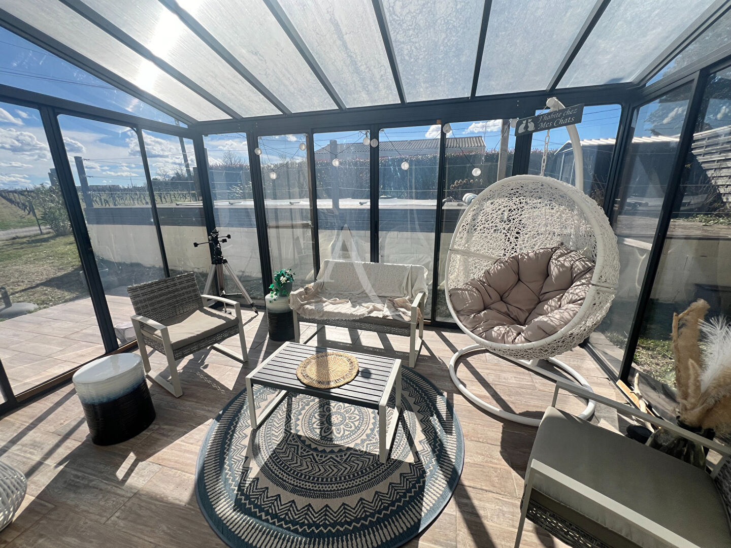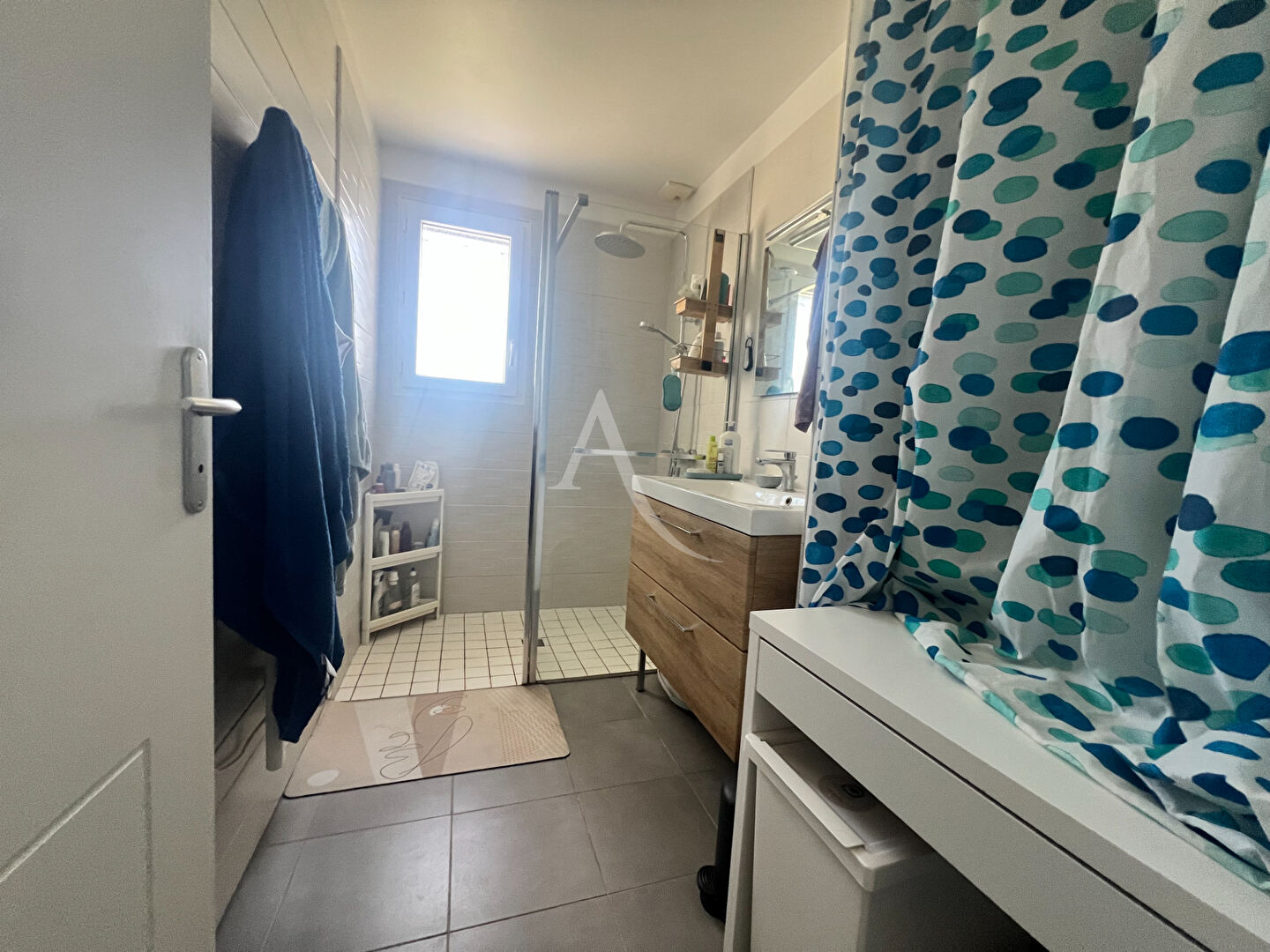 Maison composée d'une entrée dans un séjour de 31m² lumineux, une cuisine aménagée, équipée et ouverte de 7m², 2 chambres, une salle d'eau et un cellier desservant un WC.
