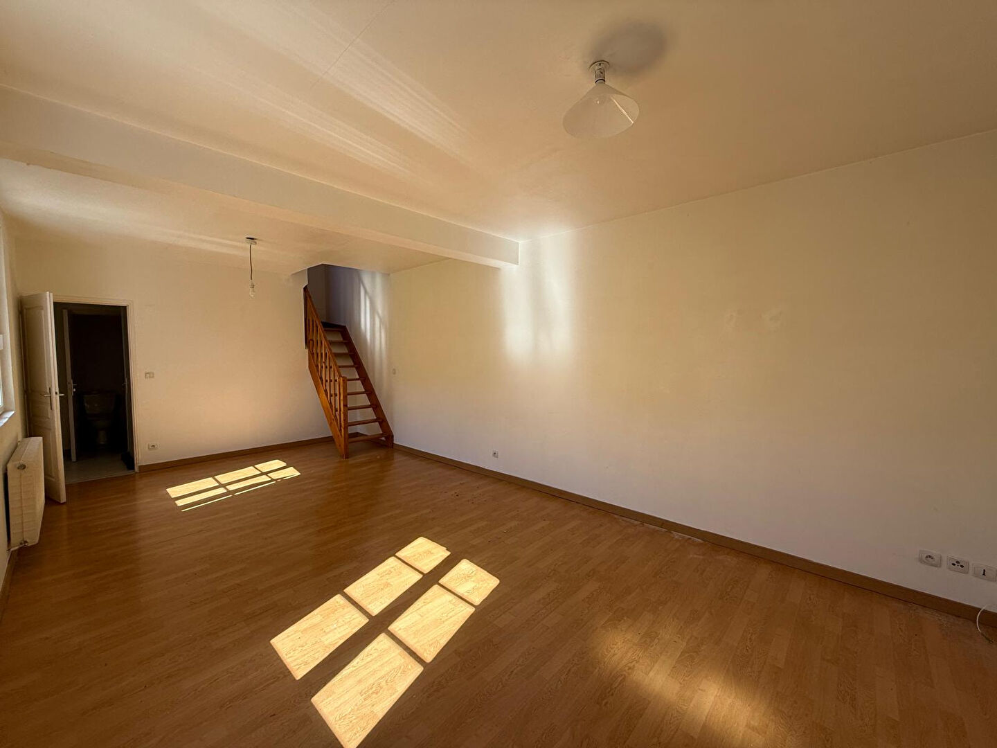 Belle maison lumineuse de 59.05m2 comprenant au rez-de-chaussée : une entrée sur séjour, une cuisine aménagée et équipée (hotte, plaque de cuisson, four, lave-vaisselle), une chambre, une salle de bains et un WC séparé. A l'étage : une pièce palière, deux pièces mansardées. Disponible avec un jardin clos, une cave en sous-sol et un garage indépendant. Chauffage individuel au gaz. Fin de préavis au 20/06/26 mais peut être disponible dès maintenant.