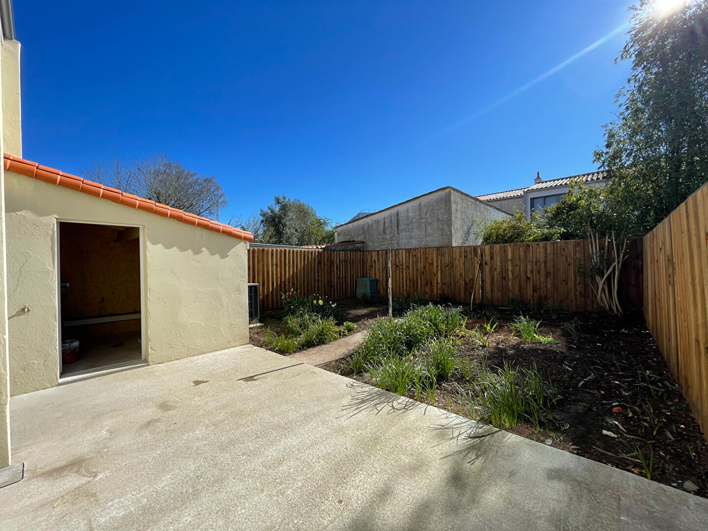 Jardin clos avec terrasse et dépendance.
