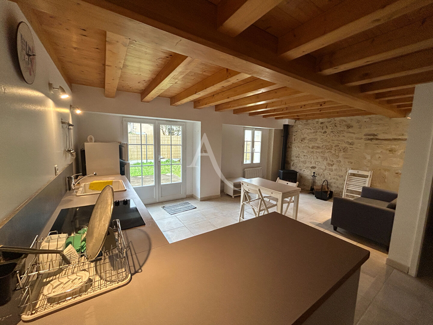 Située au calme à la campagne , maison ancienne rénovée comprenant au rez-de-chaussée une pièce de vie avec cuisine aménagée et équipée, et une salle d'eau avec WC.