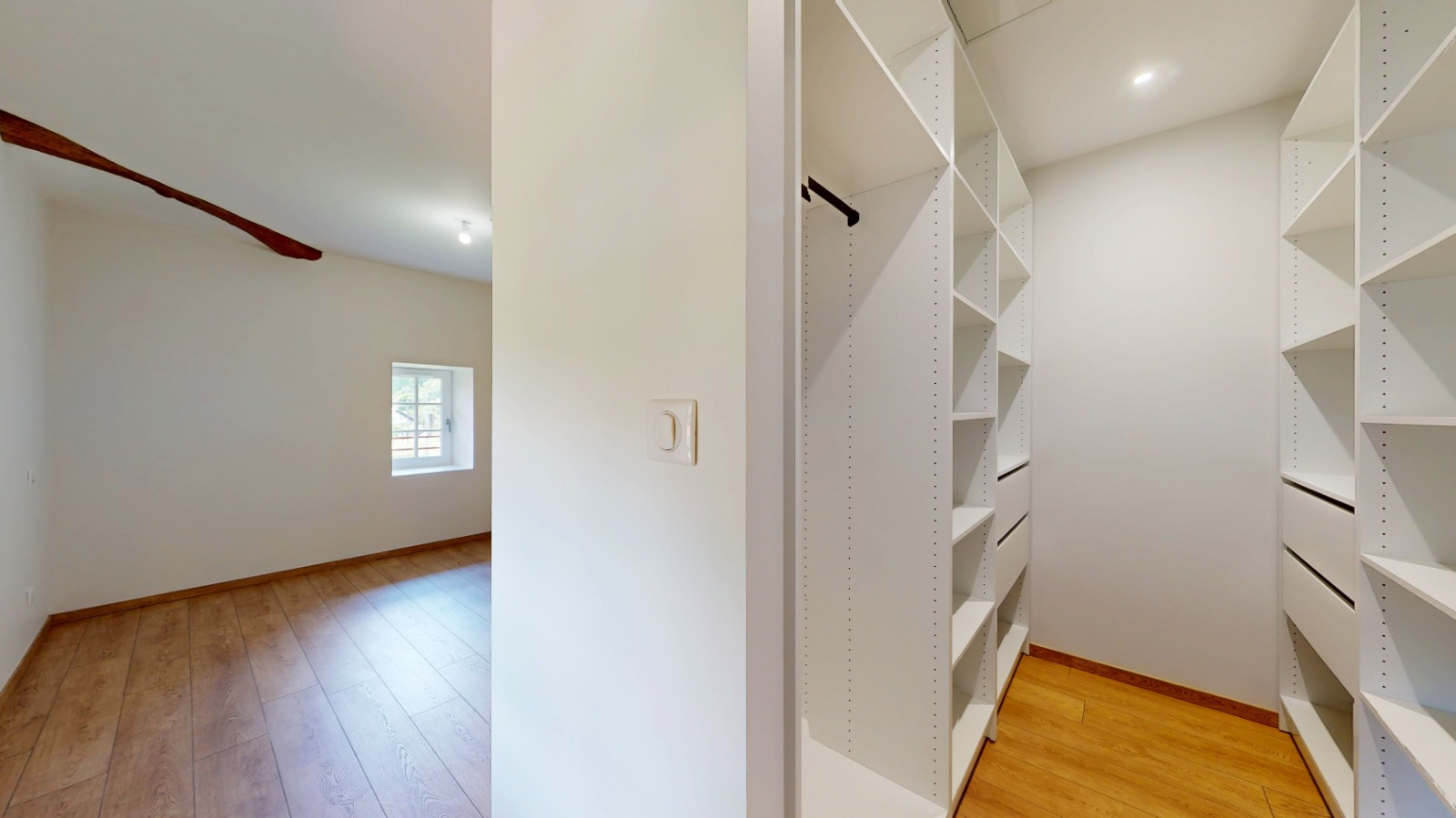 Au rez-de-chaussée, elle se compose d'une entrée, d'un séjour lumineux avec cuisine semi-ouverte aménagée, d'un cellier/buanderie, d'une chambre avec douche et point d'eau, ainsi que d'un WC indépendant. À l'étage, un escalier en bois massif mène à un palier desservant une salle de bains, un WC séparé, une suite parentale avec dressing et salle d'eau, et deux chambres supplémentaires avec rangements neufs.