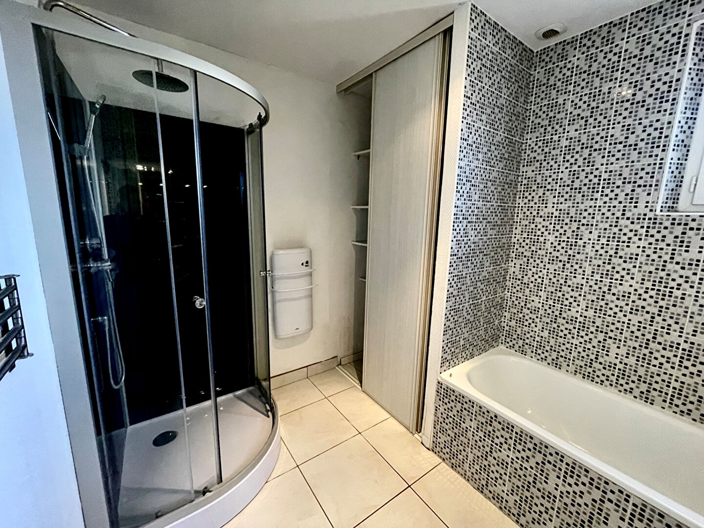 A proximité immédiate du centre ville, maison T3 de plain pied composée d'un couloir d'entrée avec rangement, d'une cuisine ouverte sur salon/séjour, 2 chambres avec placards, une salle d'eau avec douche, baignoire et double vasque, WC séparés et cellier.