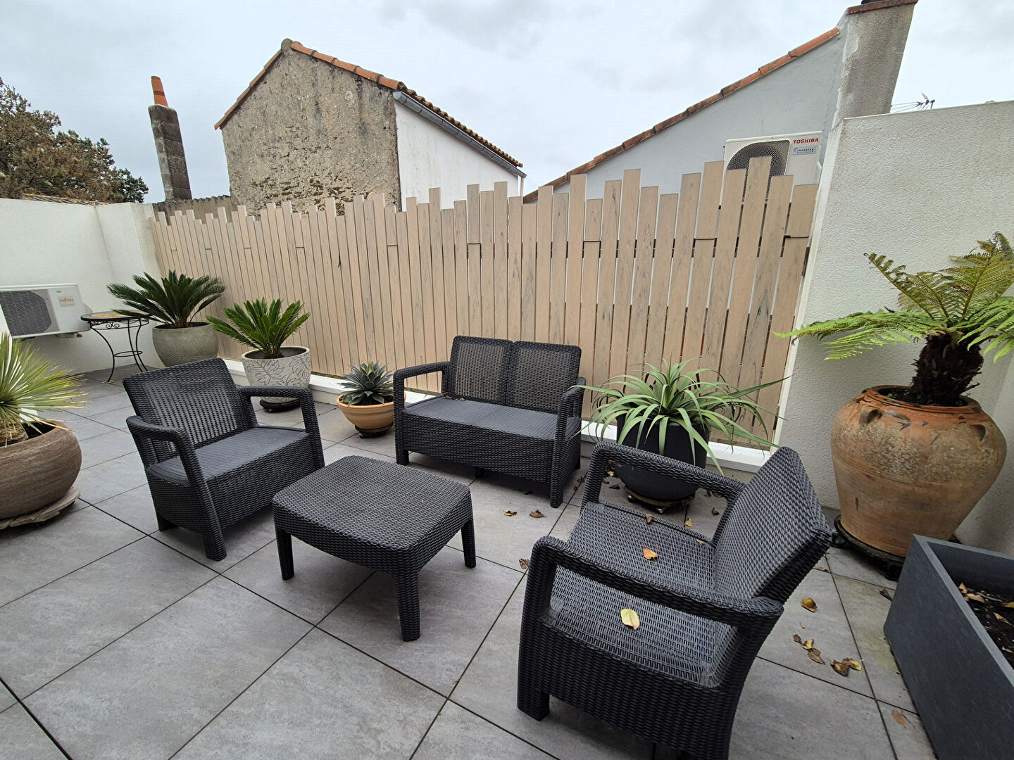 La pièce de vie s'ouvre sur une terrasse clôturée, sans vis-à-vis, parfaite pour profiter des beaux jours.