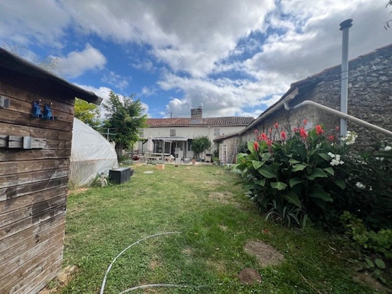 Maison de plain pied située en campagne proche d'Aiguillon composée d'une grande pièce de vie avec coin cuisine, 2 chambres, une salle de bains avec douche et baignoire, un toilette et une buanderie.