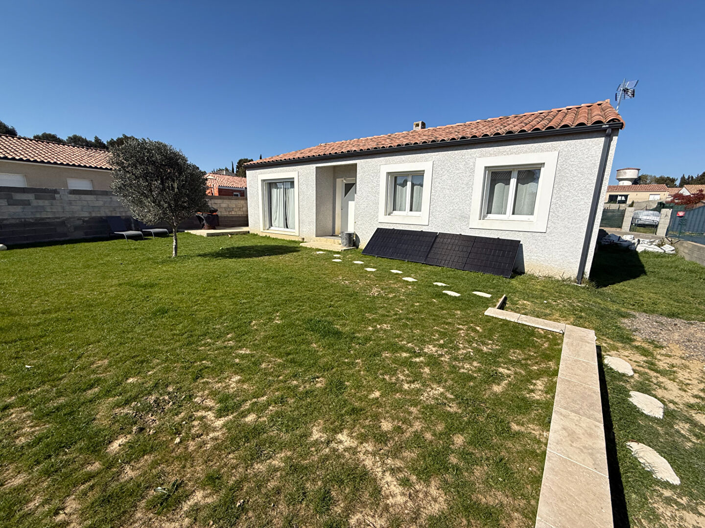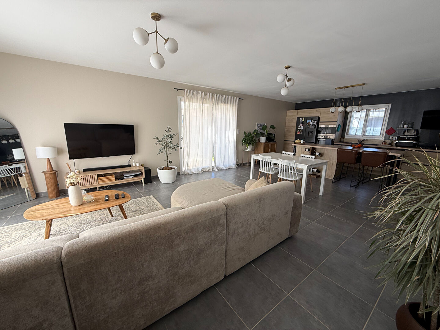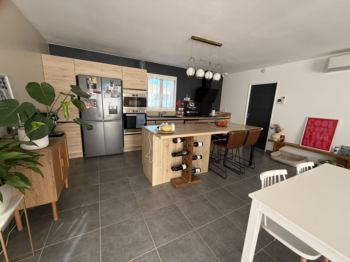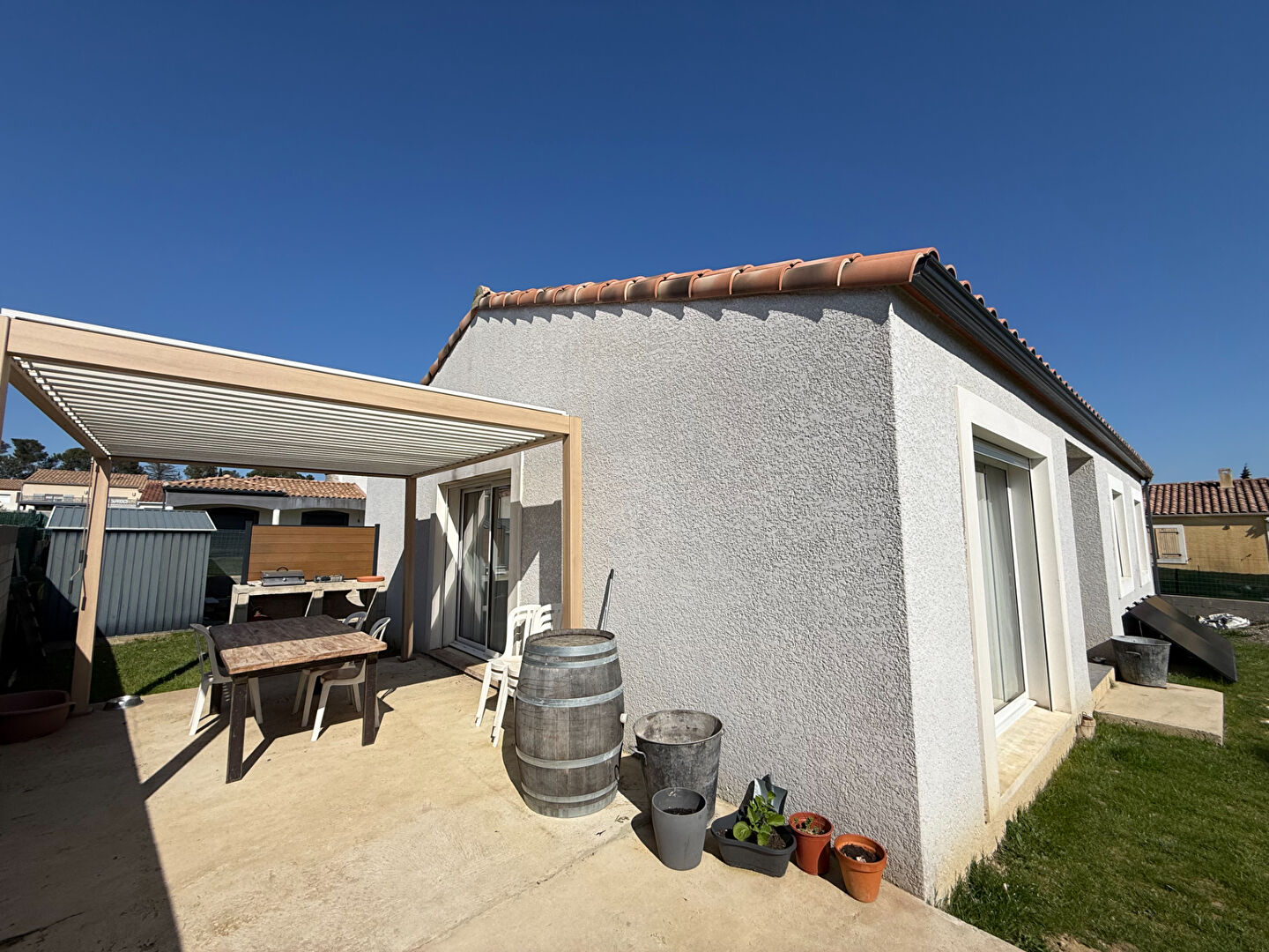 Pavillon climatisé de plain pied situé à Lavalette, avec un beau séjour ouvert sur une cuisine meublée, un cellier.