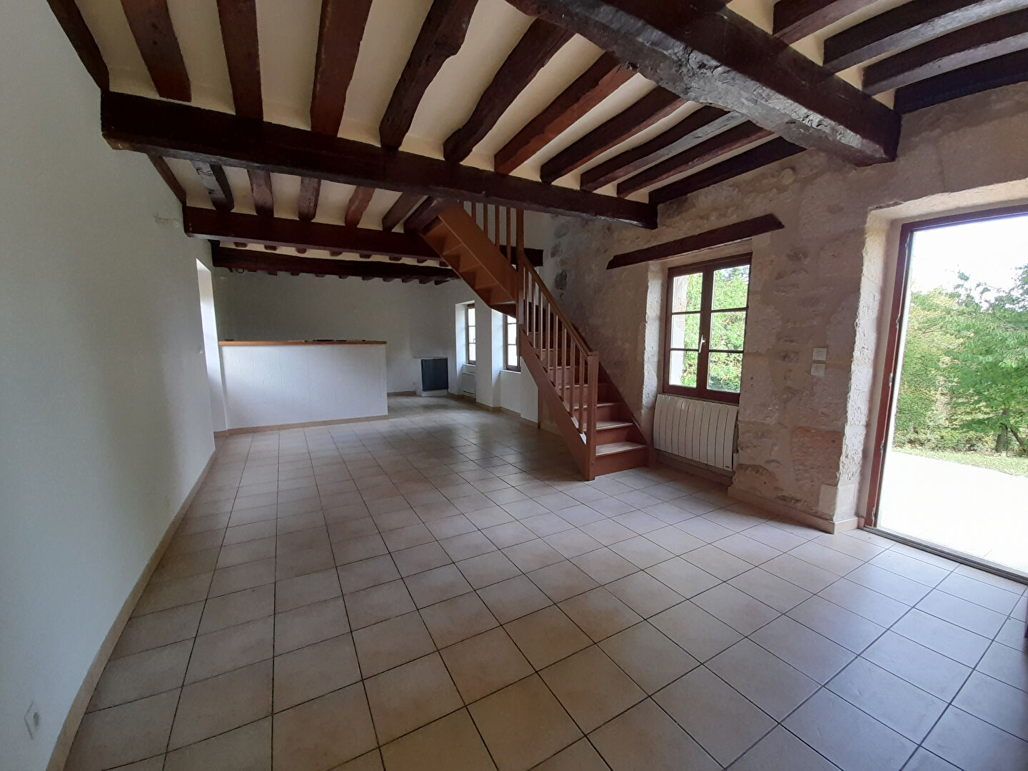 A louer dans village calme de LAVILLETERTRE avec gare sur place, maison isolée de 64.40m² offrant au rez de chaussée : un séjour avec cuisine ouverte aménagée (cuisine en cours de rénovation, photo non contractuelle), à l'étage : un palier, une salle d'eau, un WC, 2 chambres. Petite dépendance de stockage.