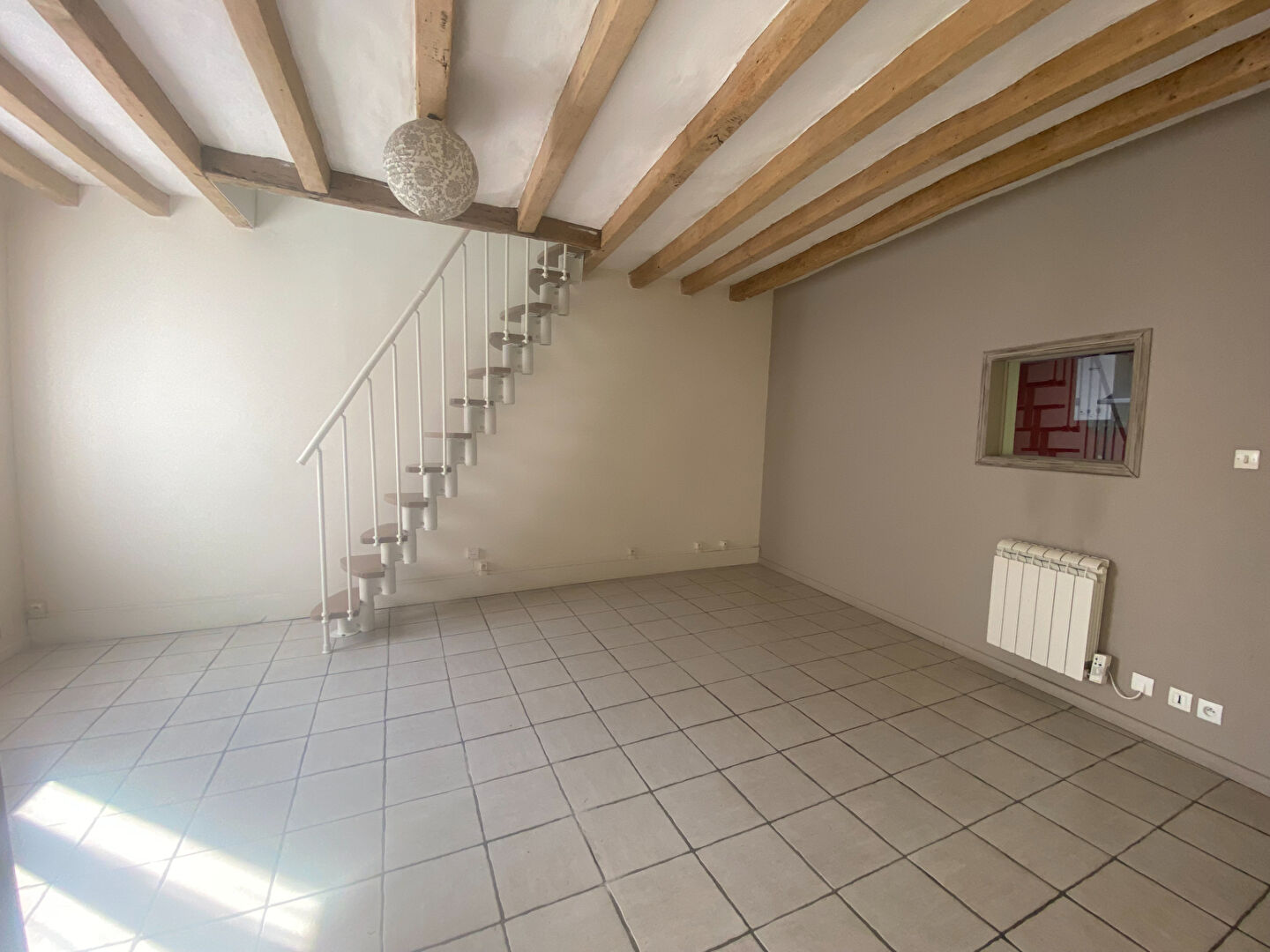 A LOUER, PLESSIS GRAMMOIRE, MAISON DE BOURG AVEC TERRASSE comprenant: Au RDC: un salon- séjour, une cuisine indépendante A/E (plaque de cuisson, four et hotte), chambre avec rangement, une salle de bains, un wc indépendant. A l'étage: une mezzanine menant à une chambre,
