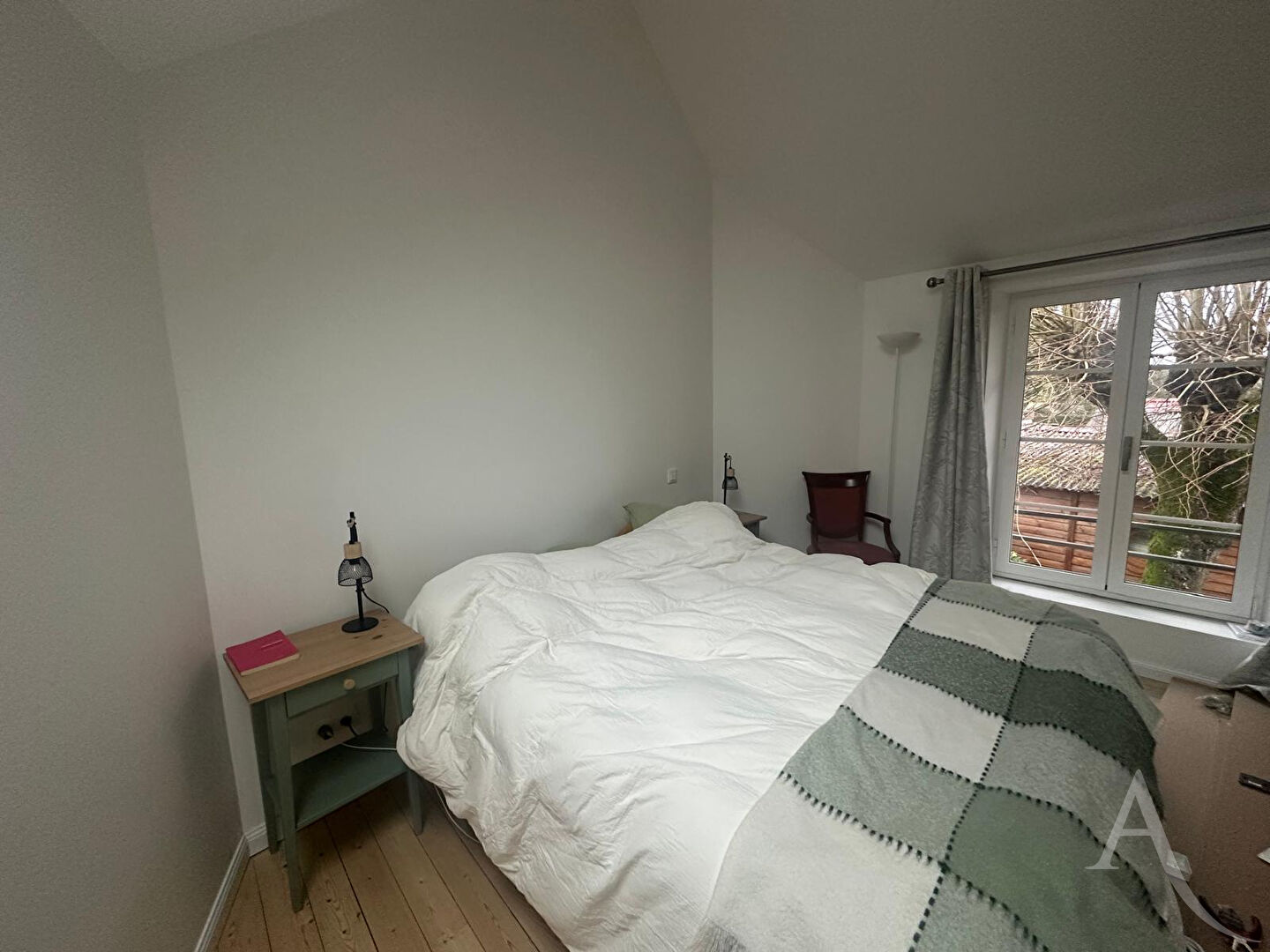 La maison, louée meublée, se compose au rez-de-chaussée d'un salon et d'une salle à manger lumineux, d'une cuisine aménagée et entièrement équipée, d'un WC indépendant, ainsi que d'une entrée avec dressing, offrant un espace de rangement pratique dès l'arrivée.