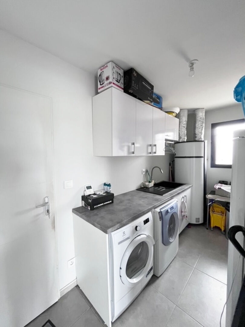 Une buanderie pratique donne accès direct à un vaste garage de 36 m².