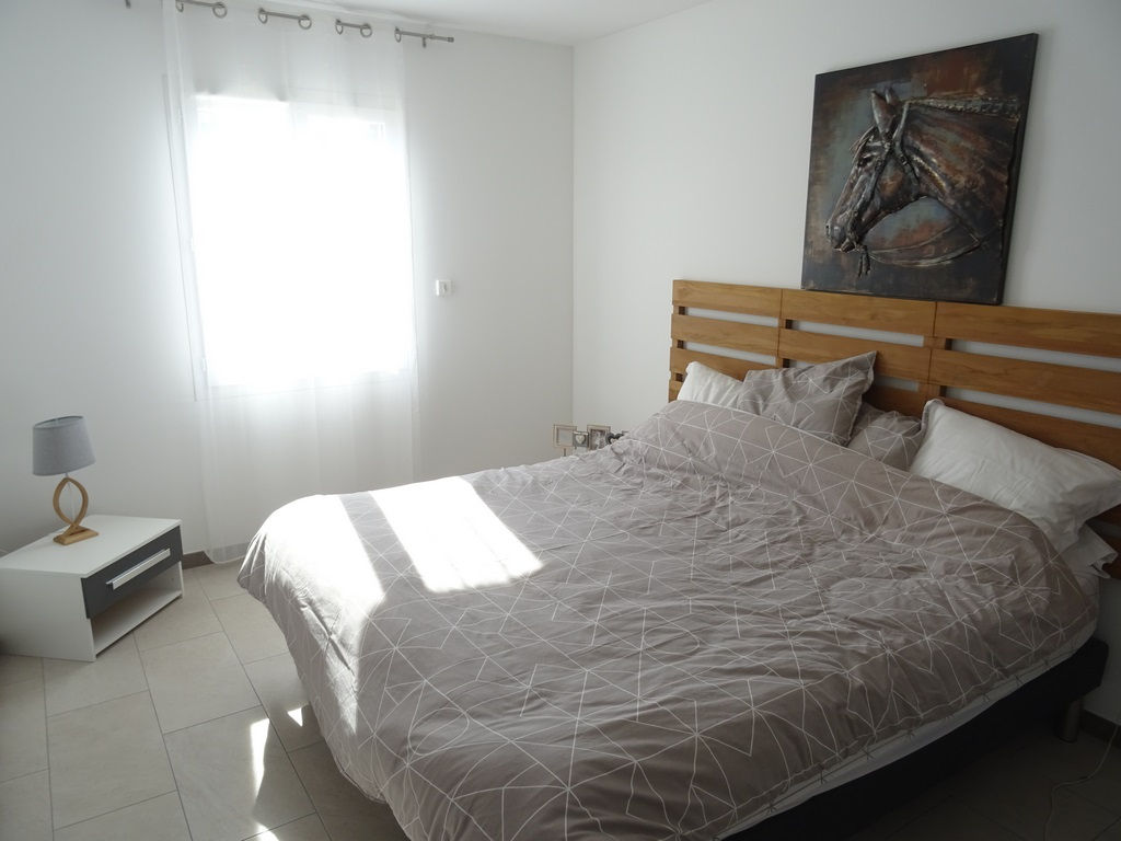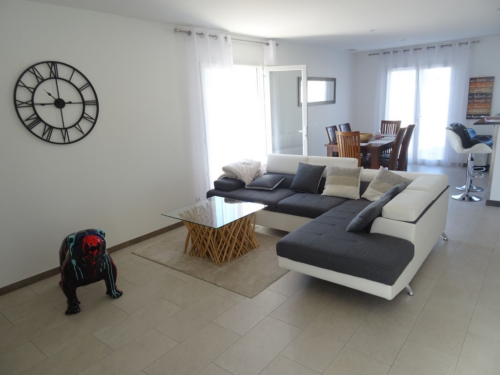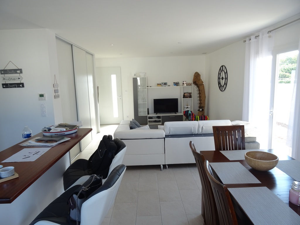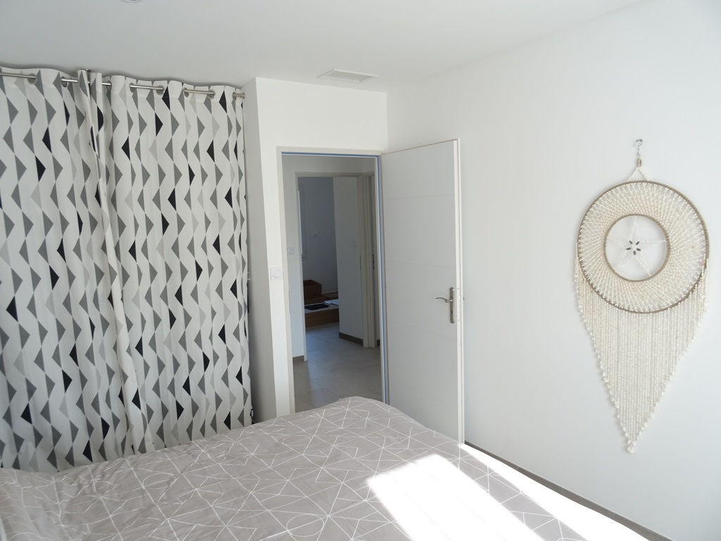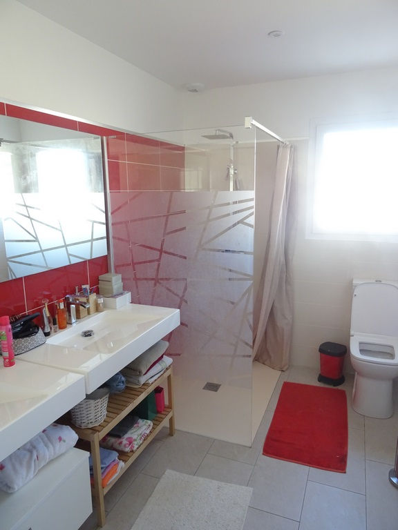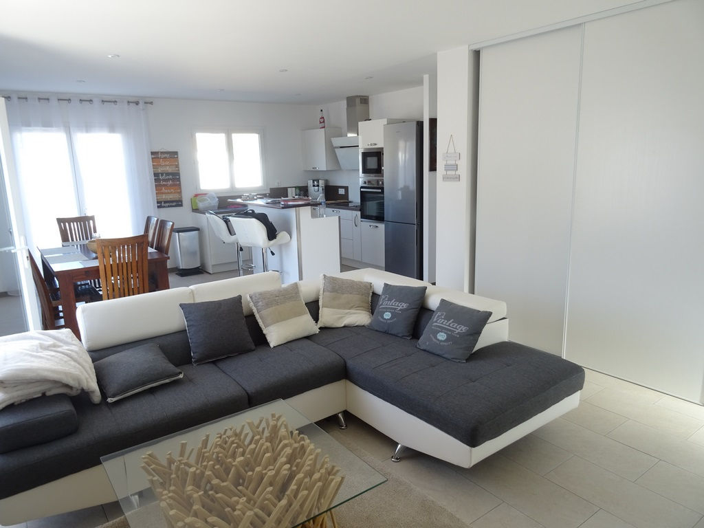 Belle villa avec grand placard dans l'entrée, un grand séjour, une cuisine entièrement équipée (frigo, plaque vitro, four, hotte, lave-vaisselle, micro-ondes encastré), 3 belles chambres avec placard, une salle d'eau double vasque avec douche italienne et wc, un autre wc séparé.