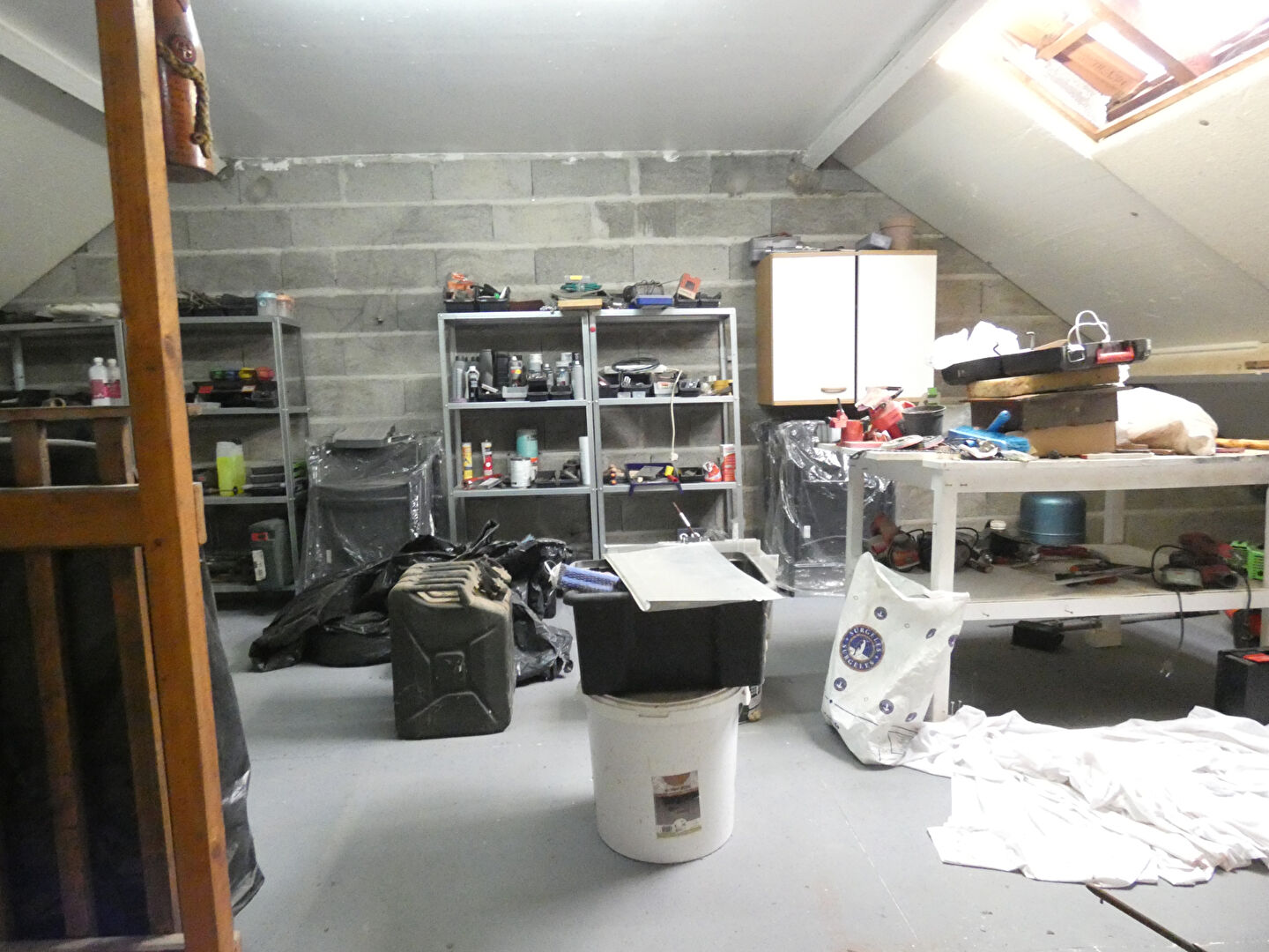Un garage attenant avec grenier sur le dessus.