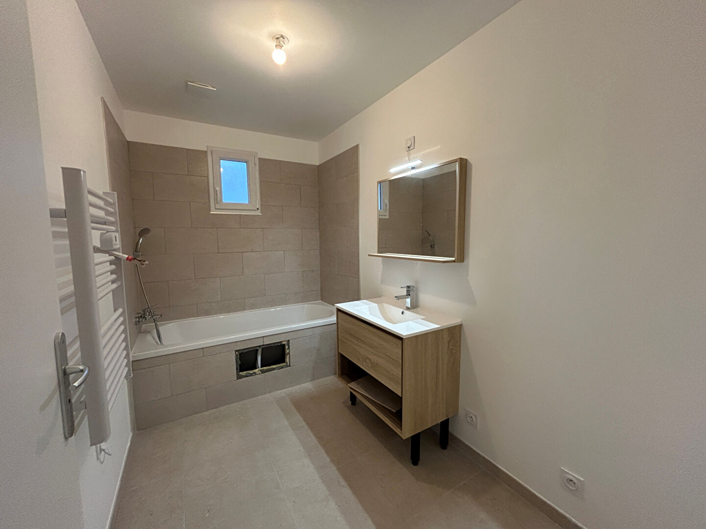 Une maison neuve de 108m2 sur NIMES route d'Avignon, comprenant une entrée avec un WC. Une pièce à vivre climatisée donnant sur une cours exclusive ainsi qu'une cuisine séparée aménagée et équipée avec une buanderie.