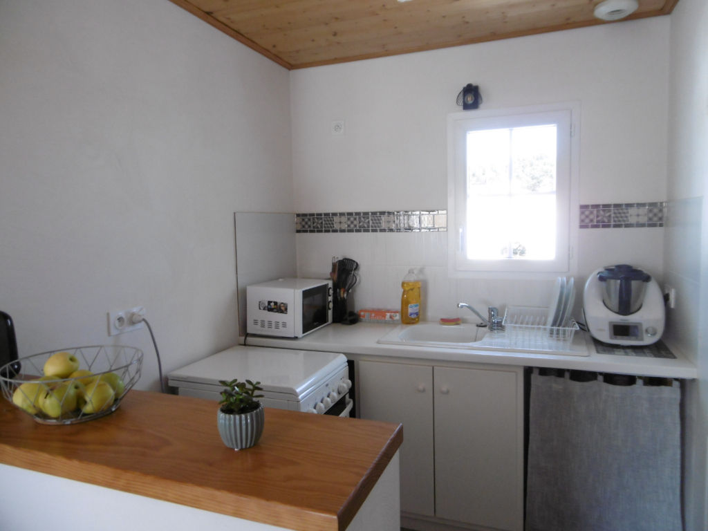 Ile de Noirmoutier, proximité du centre ville, à louer à l'année, maison de plain pied 2014, 48.97 m² + garage de 18.05 m2, composée d'une pièce de vie avec coin cuisine ouverte, deux chambres, salles d'eau, wc. Terrain clos de 240 m2 avec terrasse et cour intérieure. Disponible dès à présent.