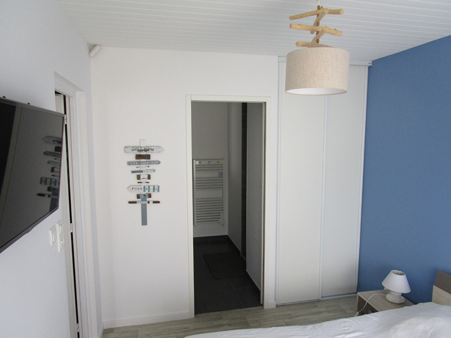 A LOUER - EXCLUSIVITE - MEUBLE - NOTRE DAME DE MONTS - En plein centre ville, cette maison de 3 chambres de 86 m2 meublée comprend une jolie pièce de vie, deux salles d'eau, une belle terrasse et un grand garage, permettant un gros volume de rangement.