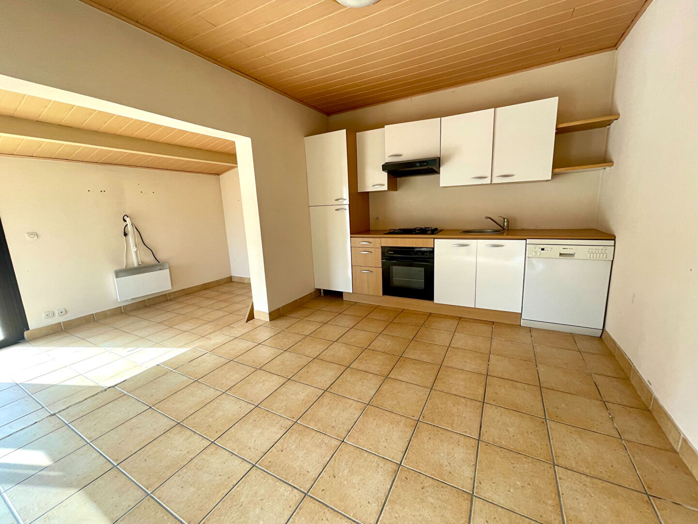 Le séjour, spacieux et baigné de lumière, s'ouvre sur une cuisine aménagée et équipée d'un électroménager neuf, formant un espace de vie convivial et fonctionnel.