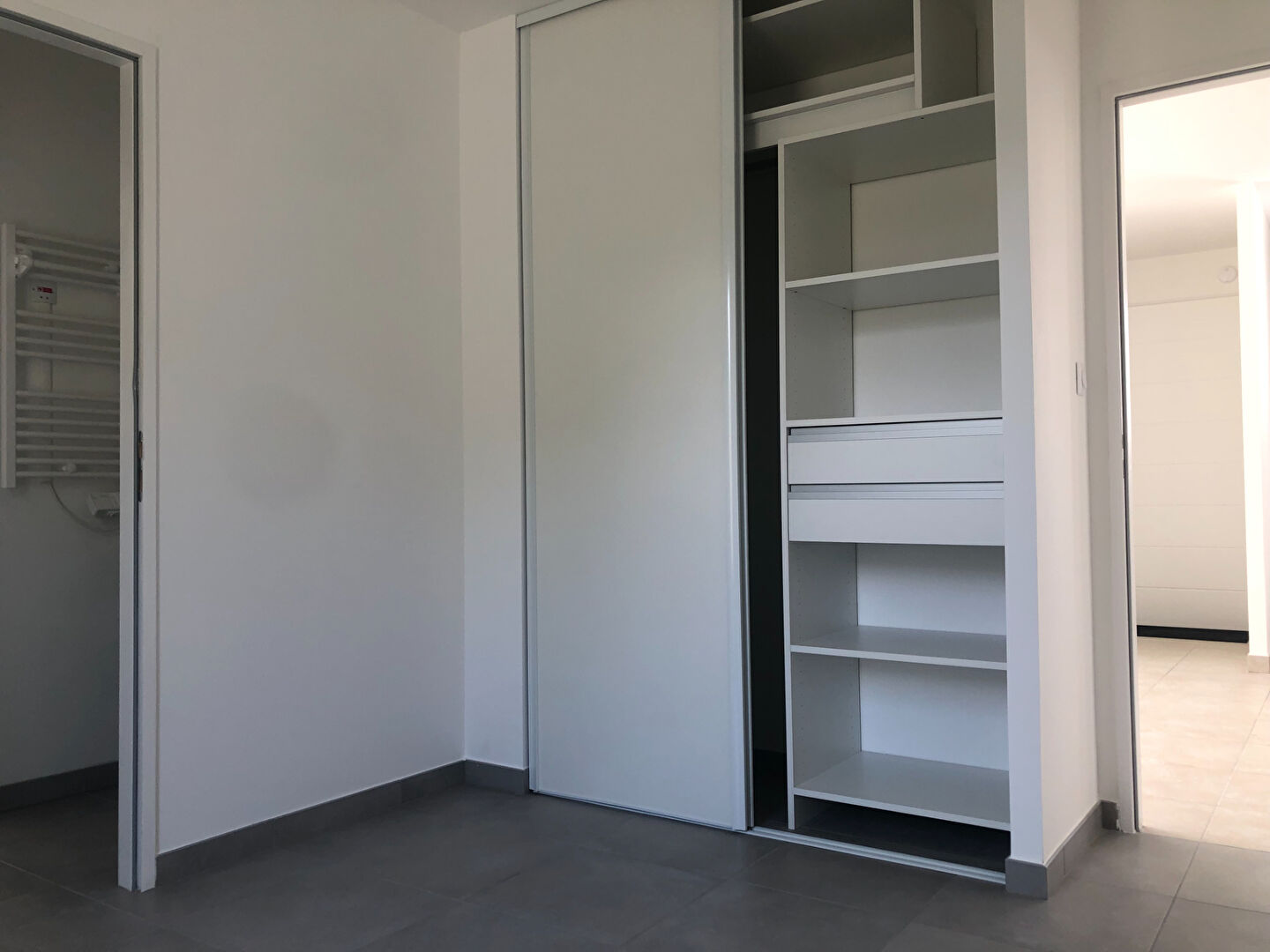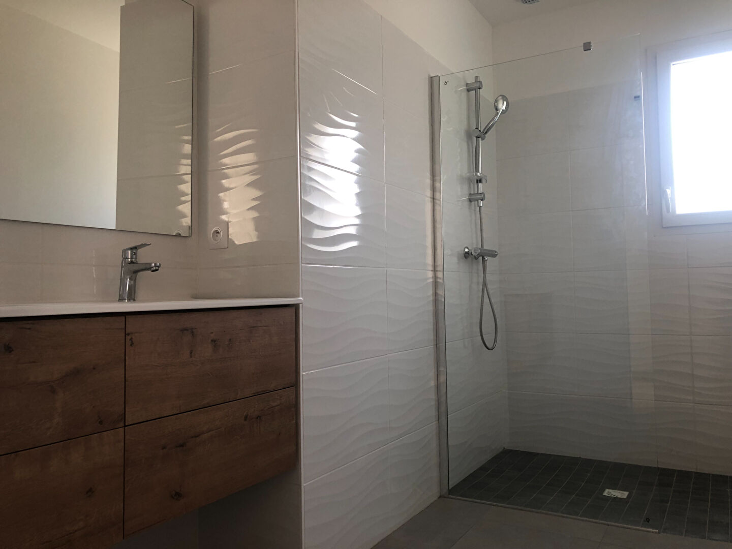 Maison construite en 2023 - de plain pied, offrant une entrée avec placard, un séjour, une cuisine ouverte aménagée, 3 chambres avec placards, 2 salle d'eau.