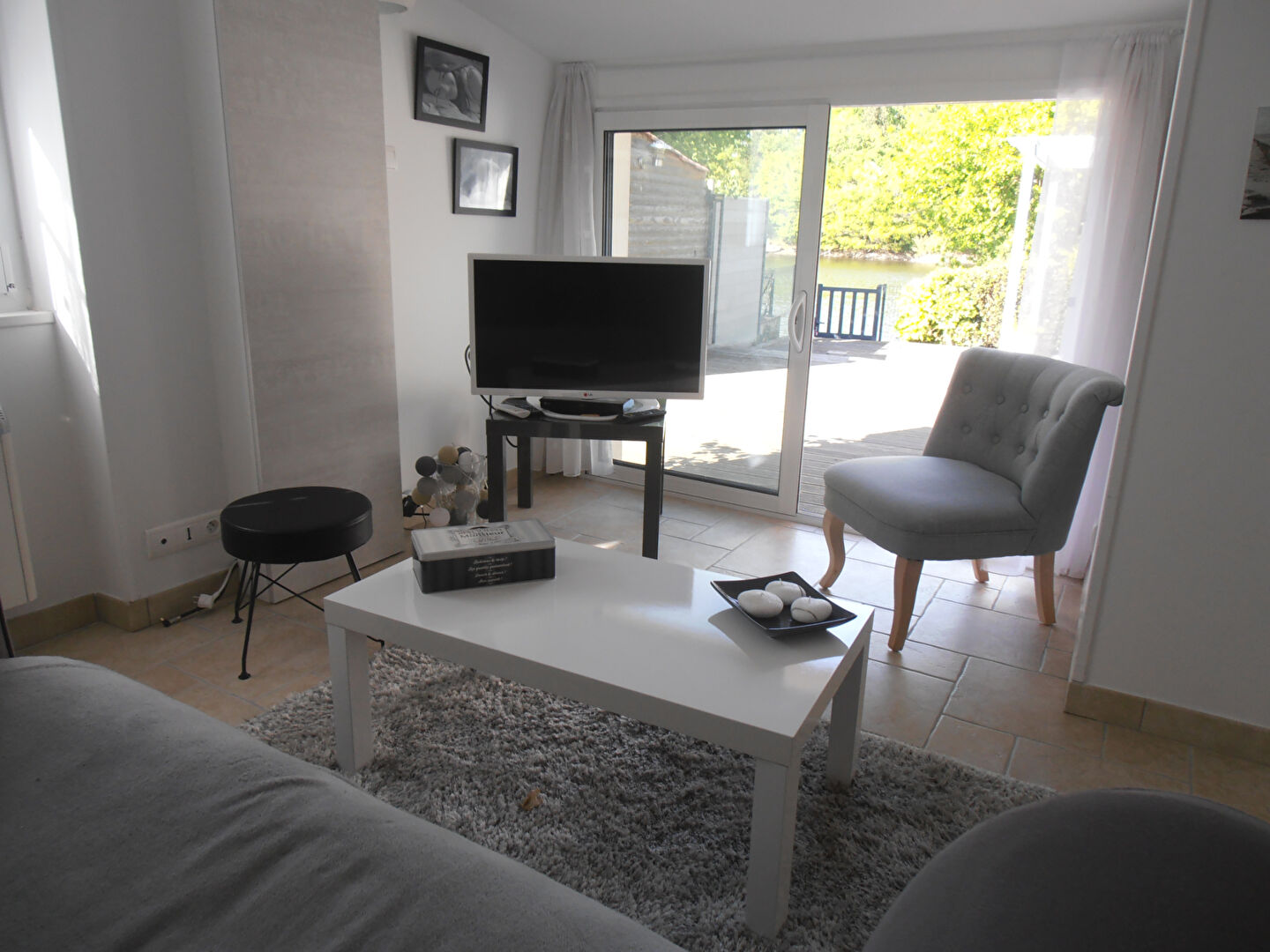 A 20 min de l'Océan, accès direct sur un lac pour cette maison de bourg composée d'une pièce de vie avec poêle à bois ouverte sur une cuisine aménagée et équipée, deux chambres, un espace bureau, une salle d'eau avec W.C. Terrasse en bois avec accès direct sur le lac.