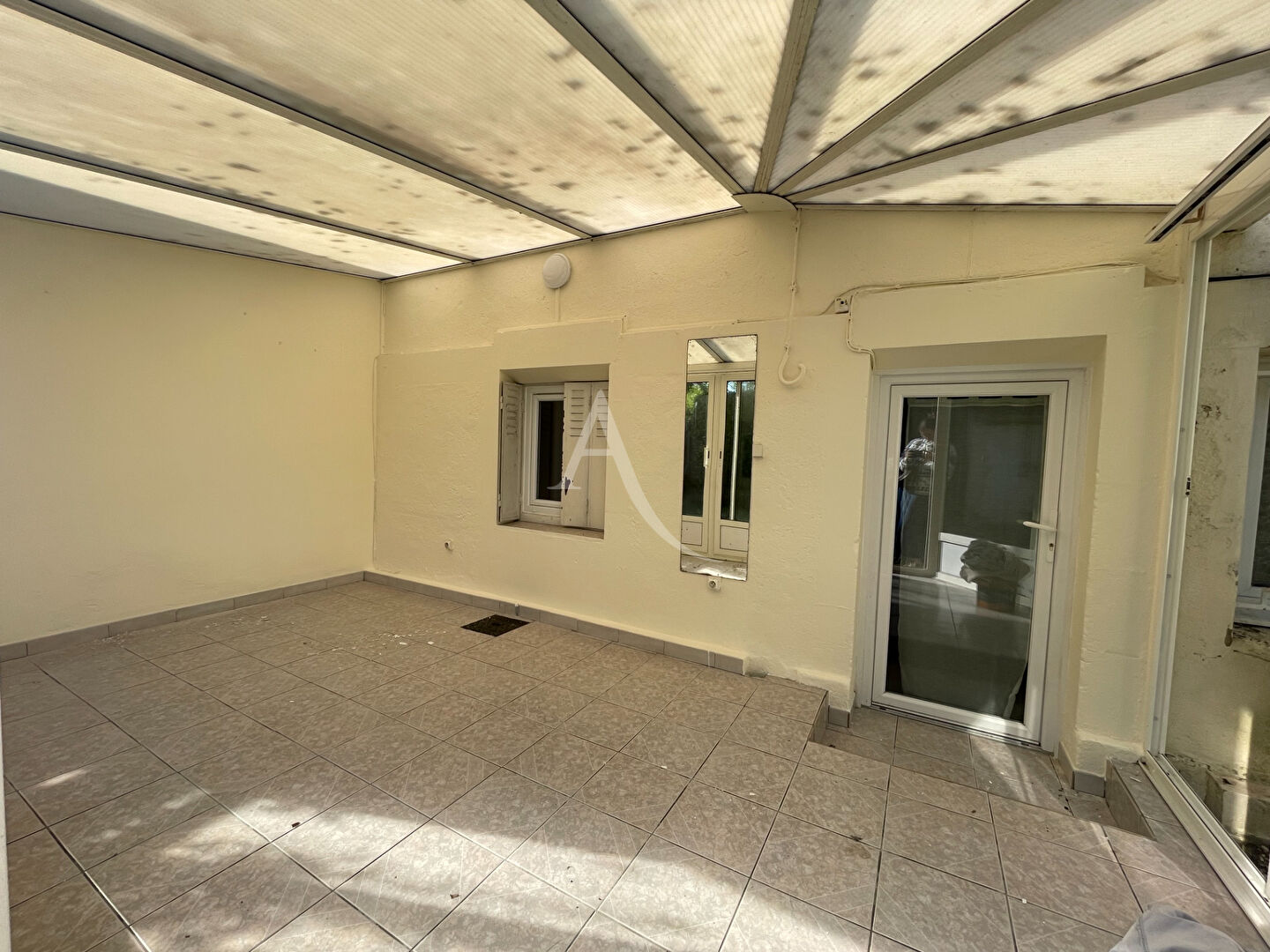 Maison d'habitation comprenant au rez de chaussée une véranda, une entrée, une salle de bains, un séjour avec une cuisine aménagée.