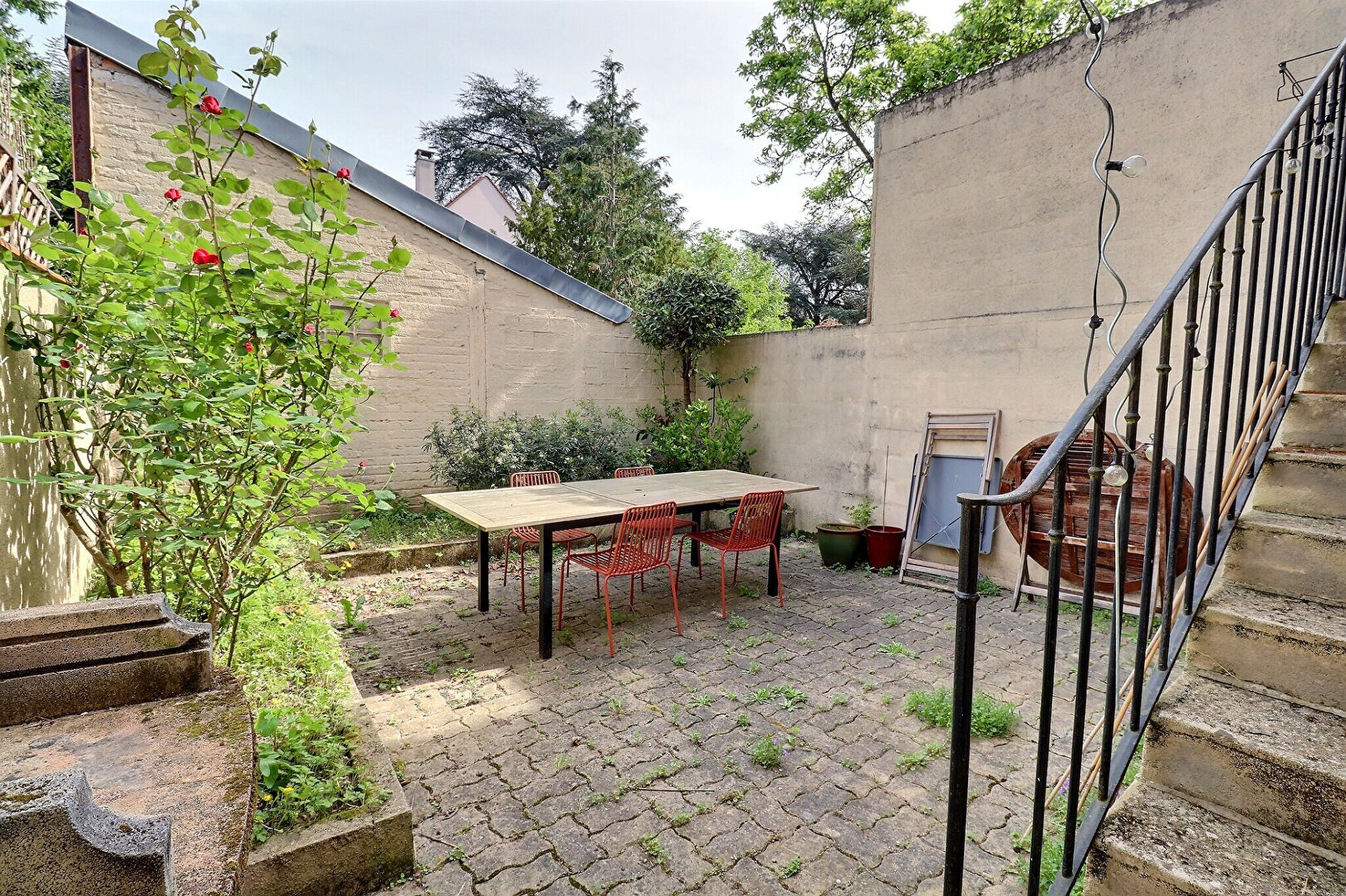 À l'extérieur, vous profiterez d'une agréable cour accessible directement depuis la cuisine, idéale pour les moments de détente.